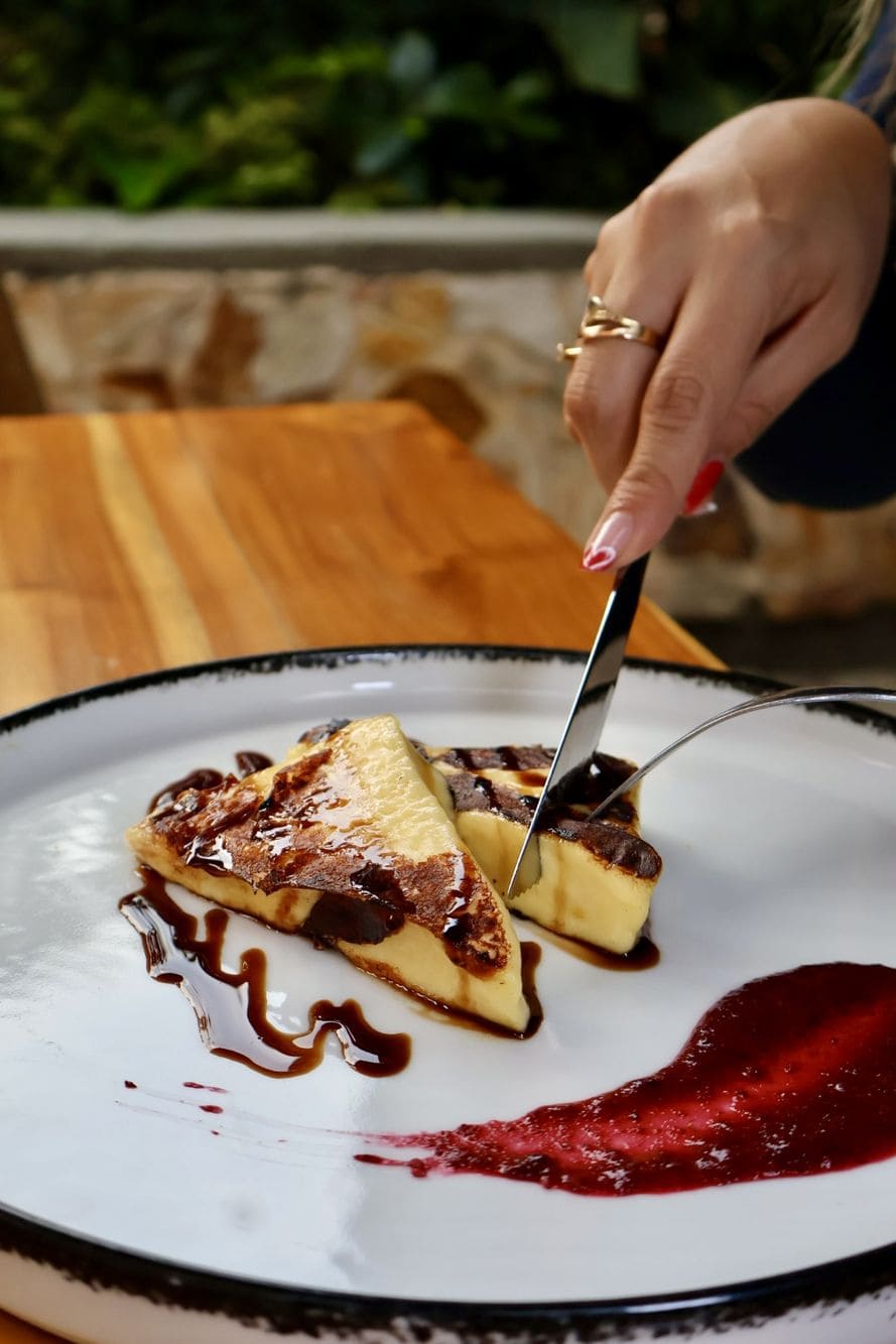 - Queso asado (provoleta): Salsa frutos rojos y reducción vinagre balsámico
