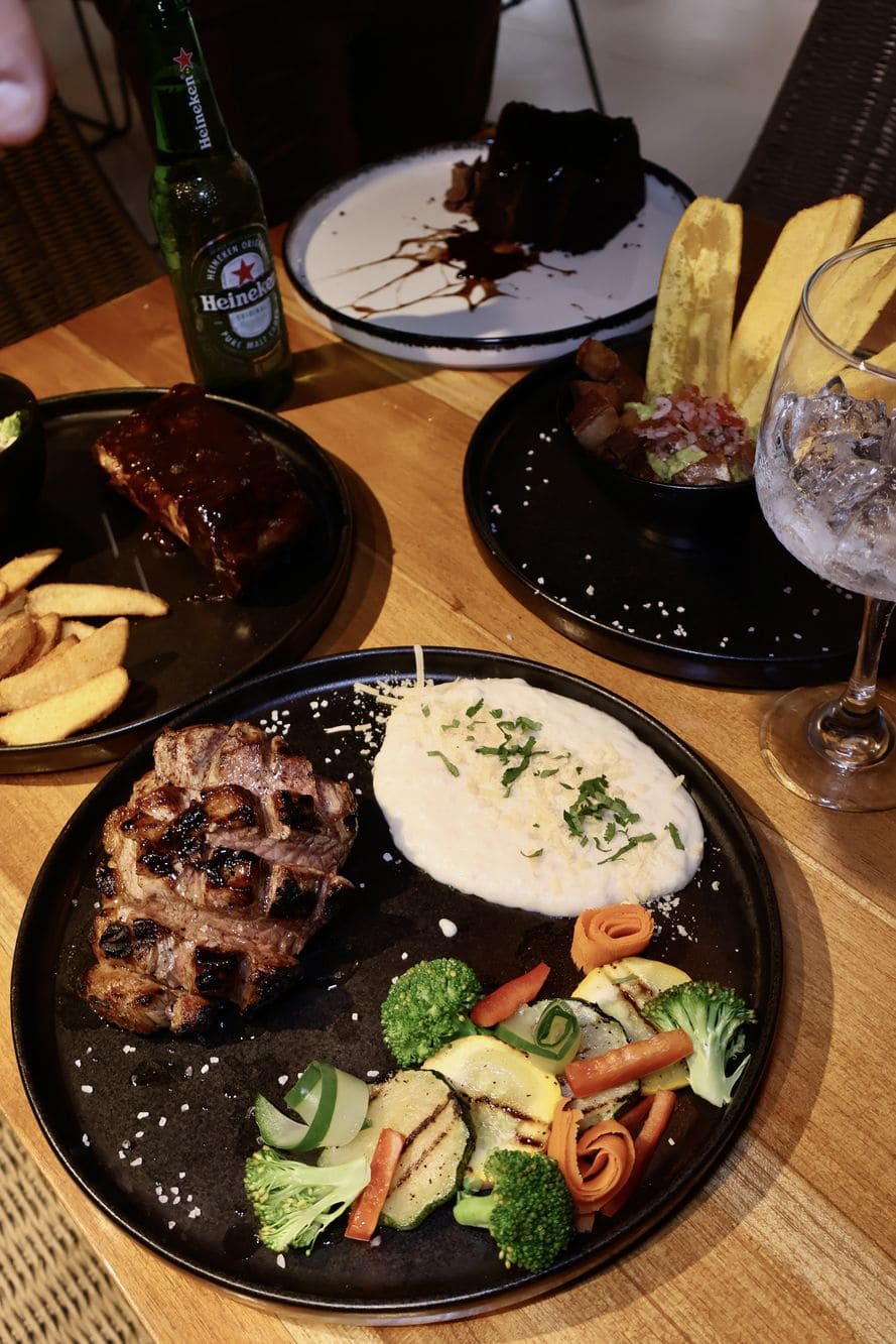 - Solomito de búfalo en salsa de champiñones: Acompañado de pure de papa, mix de verduras