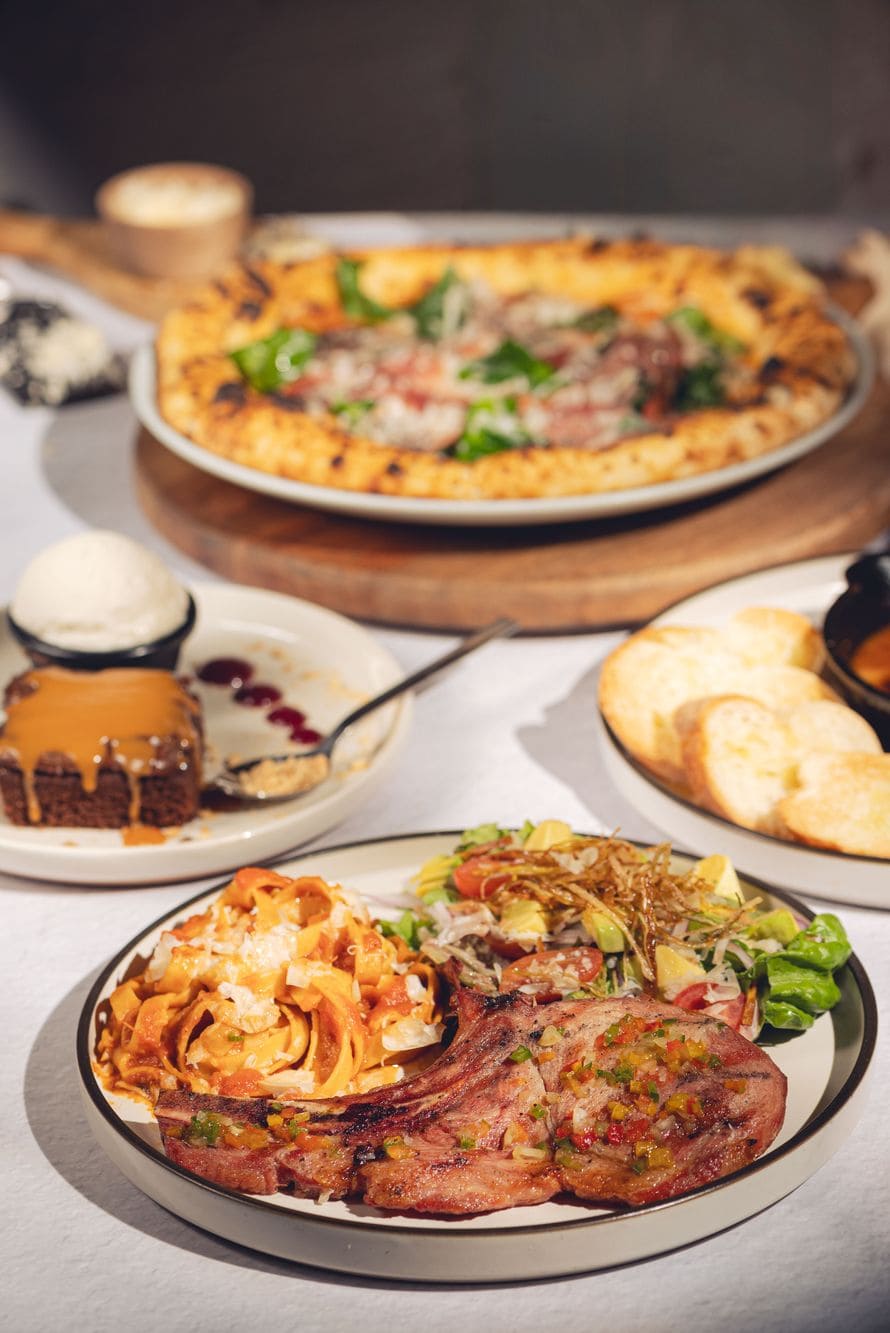 - Mixto ahumado: 250g de chuleta ahumada a la parrilla, servida con salsa criolla y toque de sal parrillera. Acompañada de fettuccine en salsa pomodoro. Ensalada fresca de mix de lechugas y mezclum orgánico con aguacate, tomate cherry y cebolla, aderezada con vinagreta y finalizada con puerro crocante y parmesano en escamas.