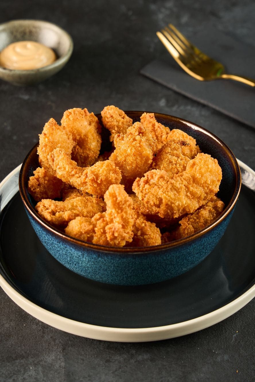 - Camarones apanados: Apanados con parmesano, acompañado de salsa chipotle