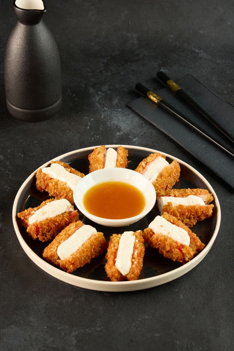 - Kani coco tempura: Palmito de cangrejo apanado en coco, acompañado de queso Philadelphia y salsa de maracuyá.