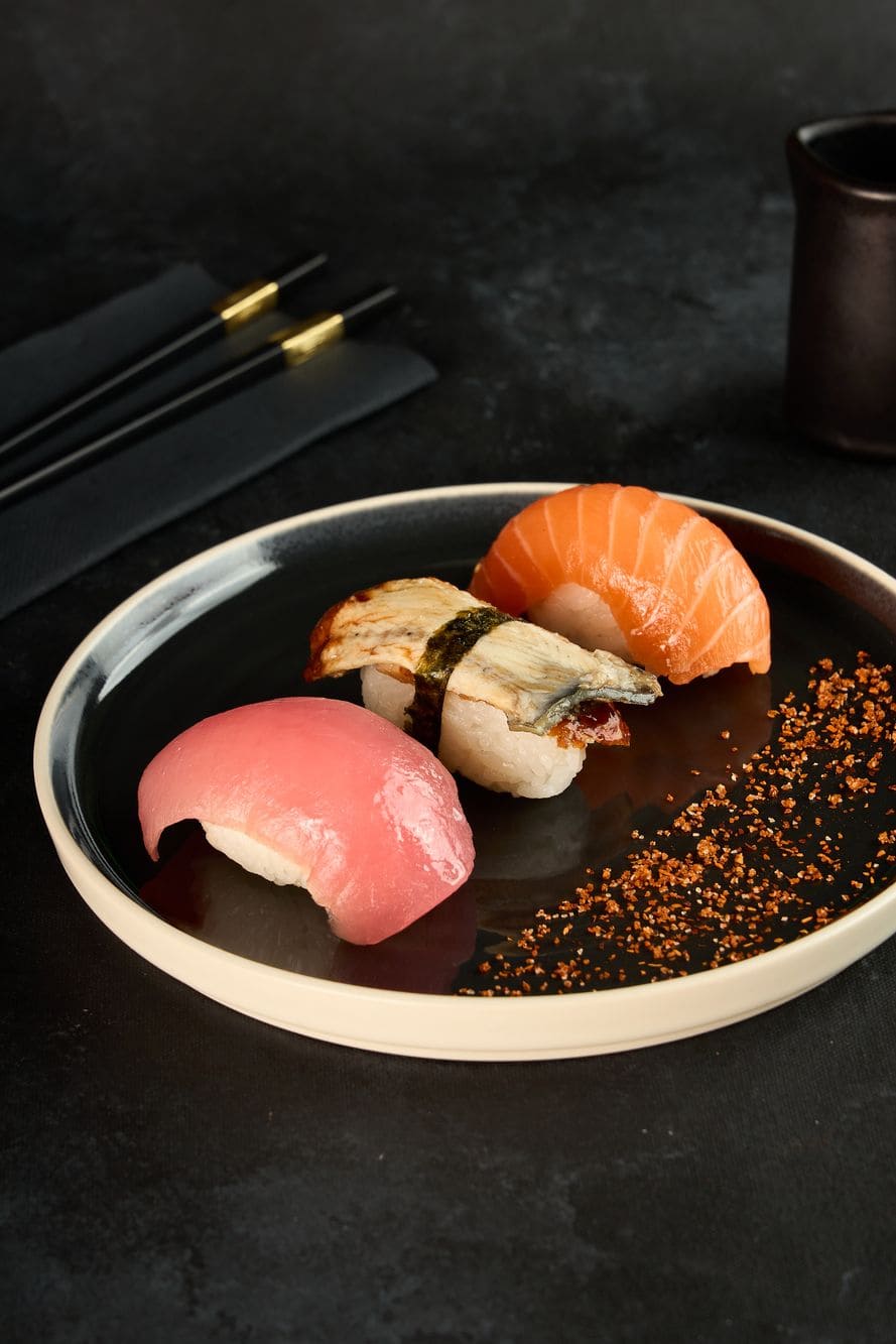 - Nigiri mixto: Finos cortes de atún, salmón y anguila, acompañados de arroz