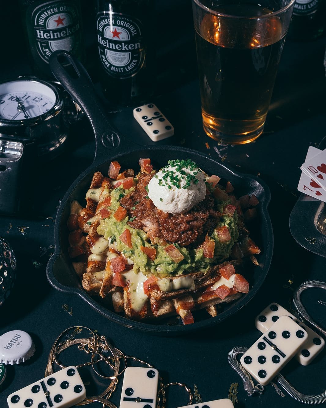 - Papas pulled: Papas francesas, guacamole, queso philadelfia, pulled pork, tomate, cebollin, salsa bbq y mayonesa de la casa