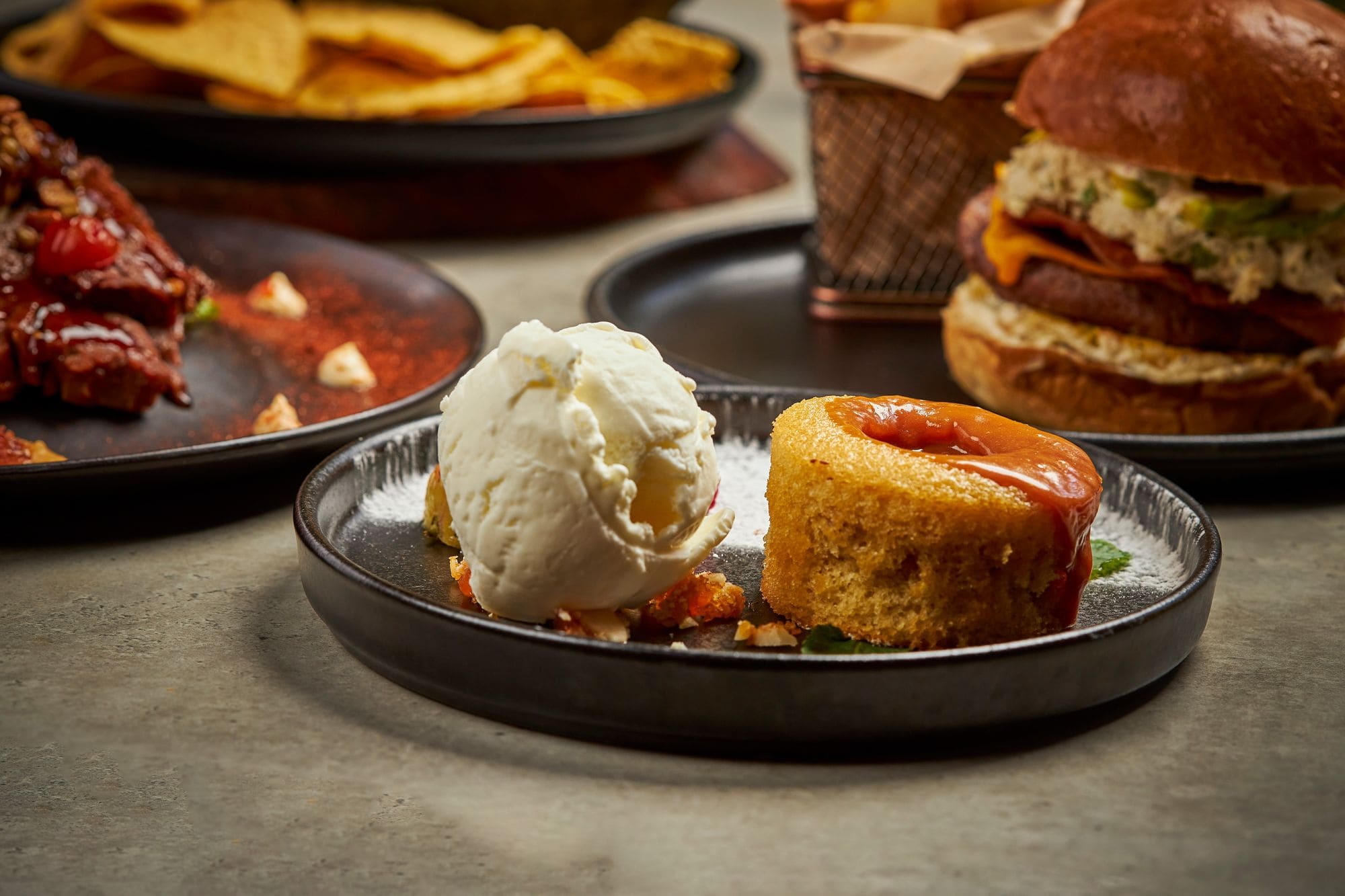 - Volcan chocolate: Relleno con ganache de chocolate, praliné de macadamia y helado de vainilla.