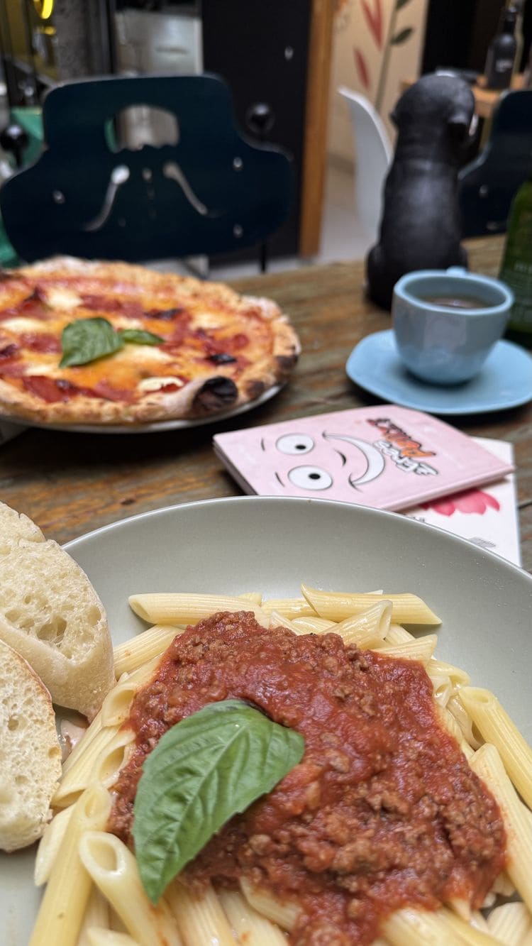 - Pasta al ragú napoletano: Sumérgete en el corazón de Nápoles con nuestro ragú de cocción lenta, una salsa vibrante y profunda que ha reposado pacientemente hasta alcanzar la perfección. Elige entre fetuccini sedoso o penne rigate al dente, servidos con una suave crema de tomate artesanal, una lluvia de queso parmesano y pan crujiente para no dejar ni rastro en el plato.