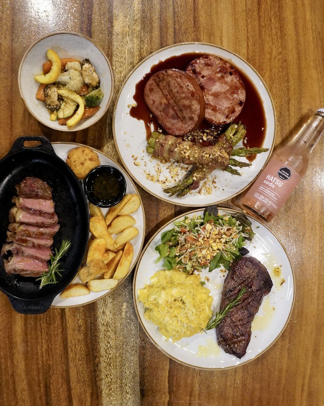 - New york steak: Corte premium de new york steak asado a fuego alto al barril para lograr un exterior perfectamente sellado y un interior jugoso y lleno de sabor. Acompañado de papas rústicas doradas y vegetales frescos salteados que equilibran cada bocado, creando una combinación irresistible para los verdaderos amantes de la carne y acompañada con 2 deliciosas guarniciones. Vegetales frescos salteados, crujientes y ligeramente caramelizados, terminados con aceite de oliva y sal marina o papas fritas doradas y crujientes, elaboradas con corte grueso para mantener su interior suave