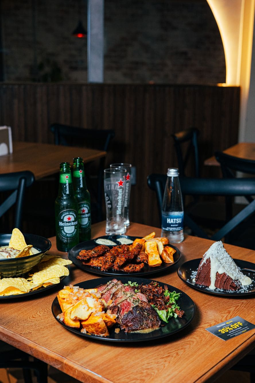 - Jager Burger: Doble carne tipo smash, doble queso cheddar, bacon ahumado, en pan brioche de papa, con mayonesa de tocineta y albahaca, lechuga romana, repollo morado, pepinillos en relish, tomate, coronada con champiñones en cerveza negra y bbq de Jager y papas a la francesa.
