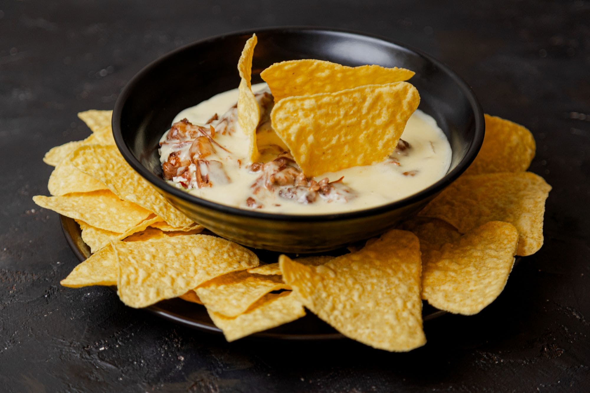 - Nachos: Carne desmechada y chicharrón en BBQ de la casa, acompañado de guacamole, sour cream y pico’e gallo, con mozzarella fundido en una cama de nachos