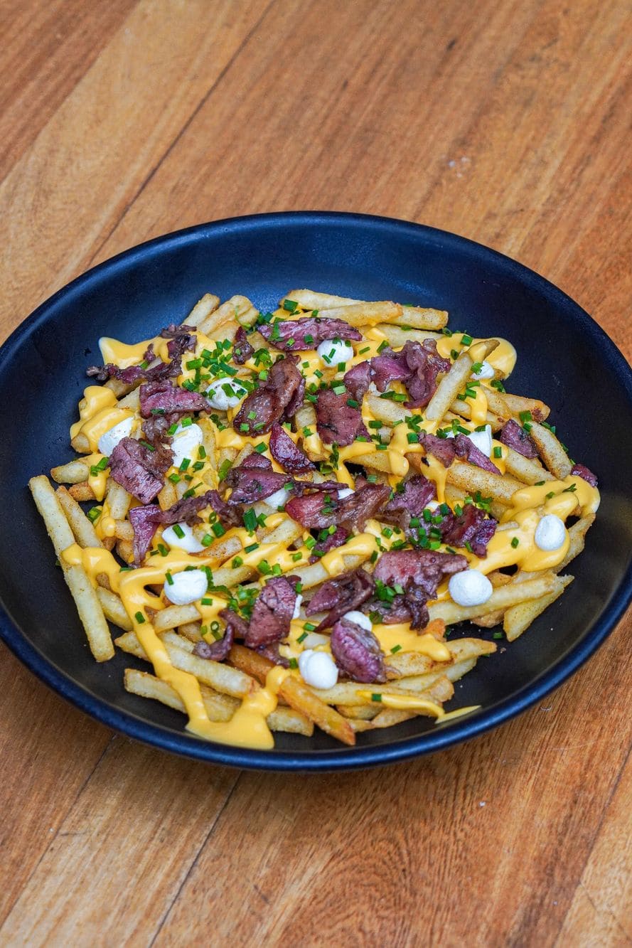 - Papas loaded fries: Papas a la francesa con salsa de queso cheddar, tocineta crocante, cremoso sweet onion y cebollin