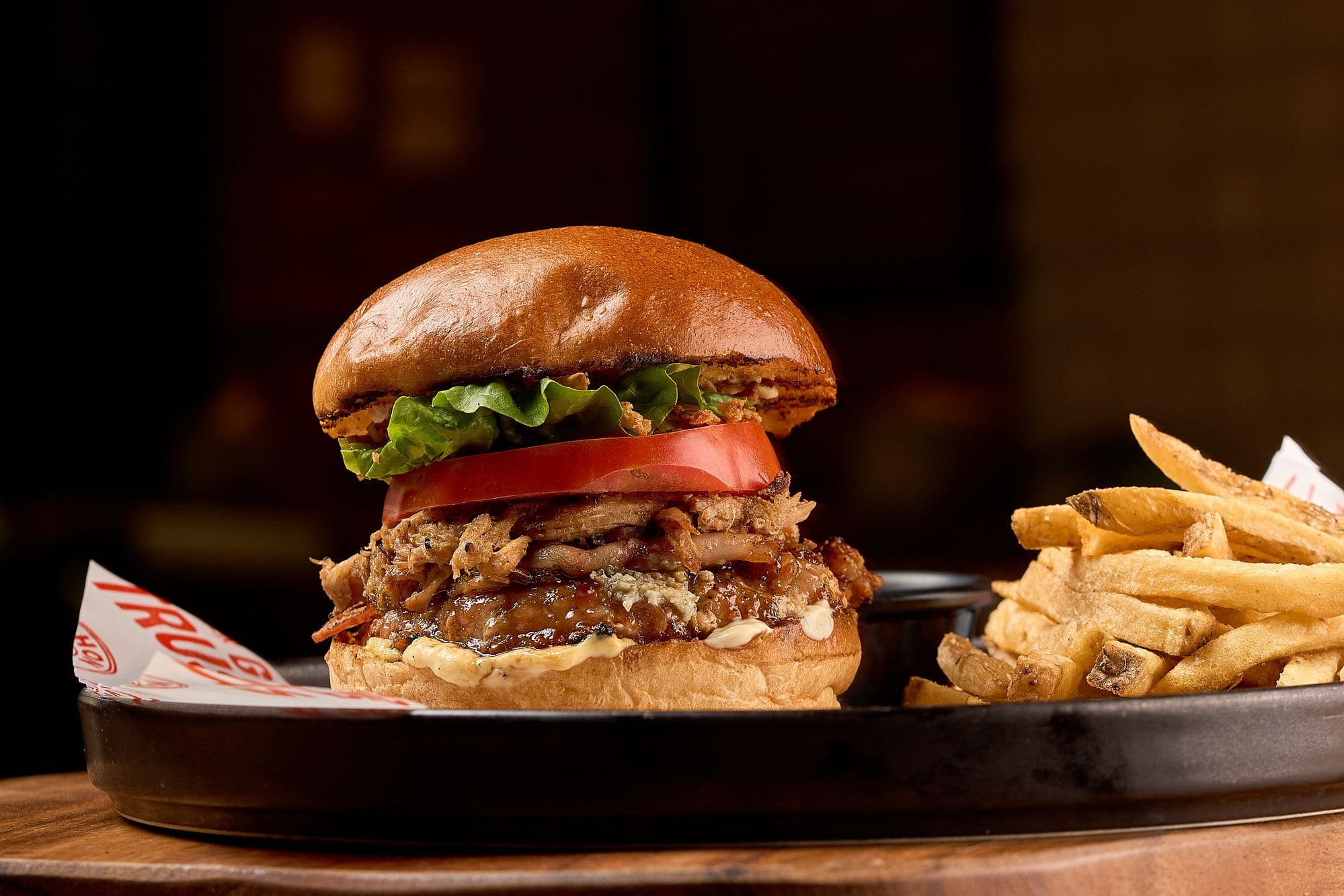 - Hamburguesa super cochon: Nuestra burger versión 2.0, jugosa carne 100% de cerdo a la parrilla coronada con pulled pork, salsa sweet bourbon, tocineta, queso azul y cebolla caramelizada crocante, con lechuga y tomate fresco. Acompañada de papas a la francesa y salsa de la casa.