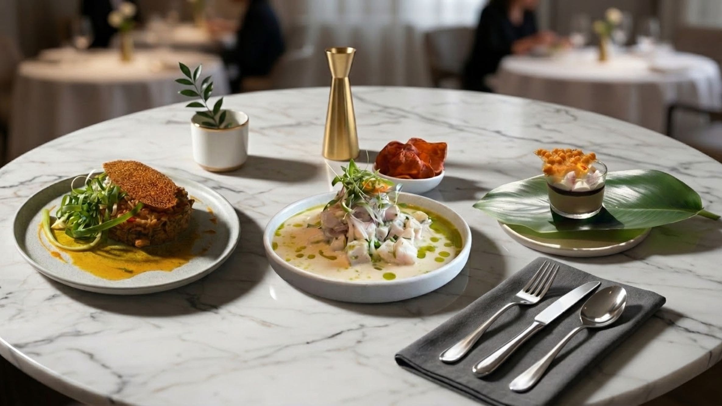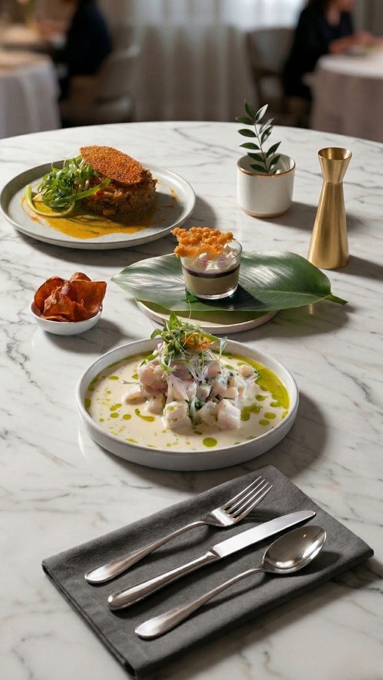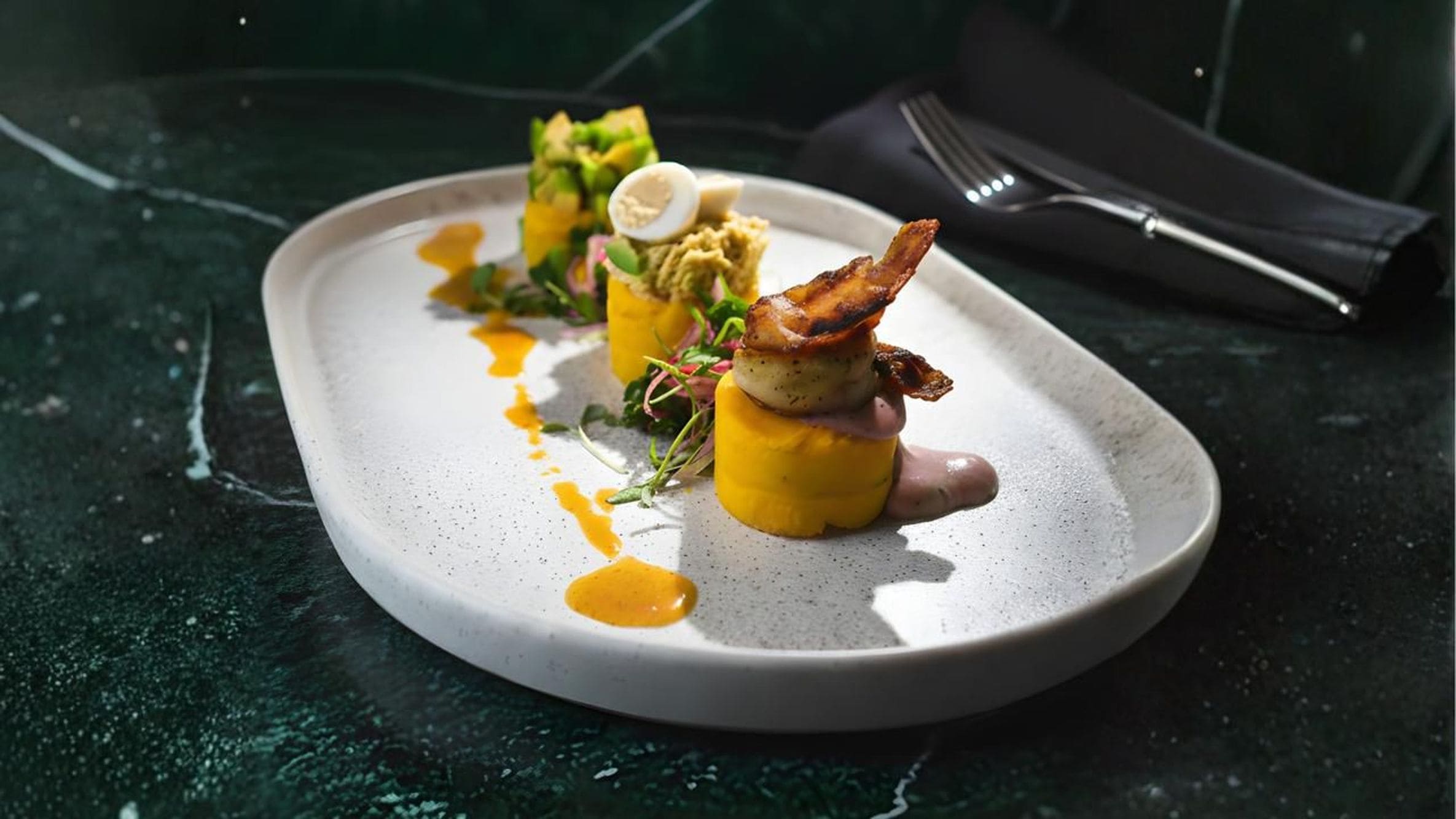 - Causa limeña: Un plato de textura suave y presentación impecable, donde cada capa se integra en perfecto equilibrio. Su sabor es delicado pero expresivo, con un contraste refrescante y una sensación cremosa que envuelve el paladar, logrando una experiencia elegante, fresca y profundamente reconfortante.