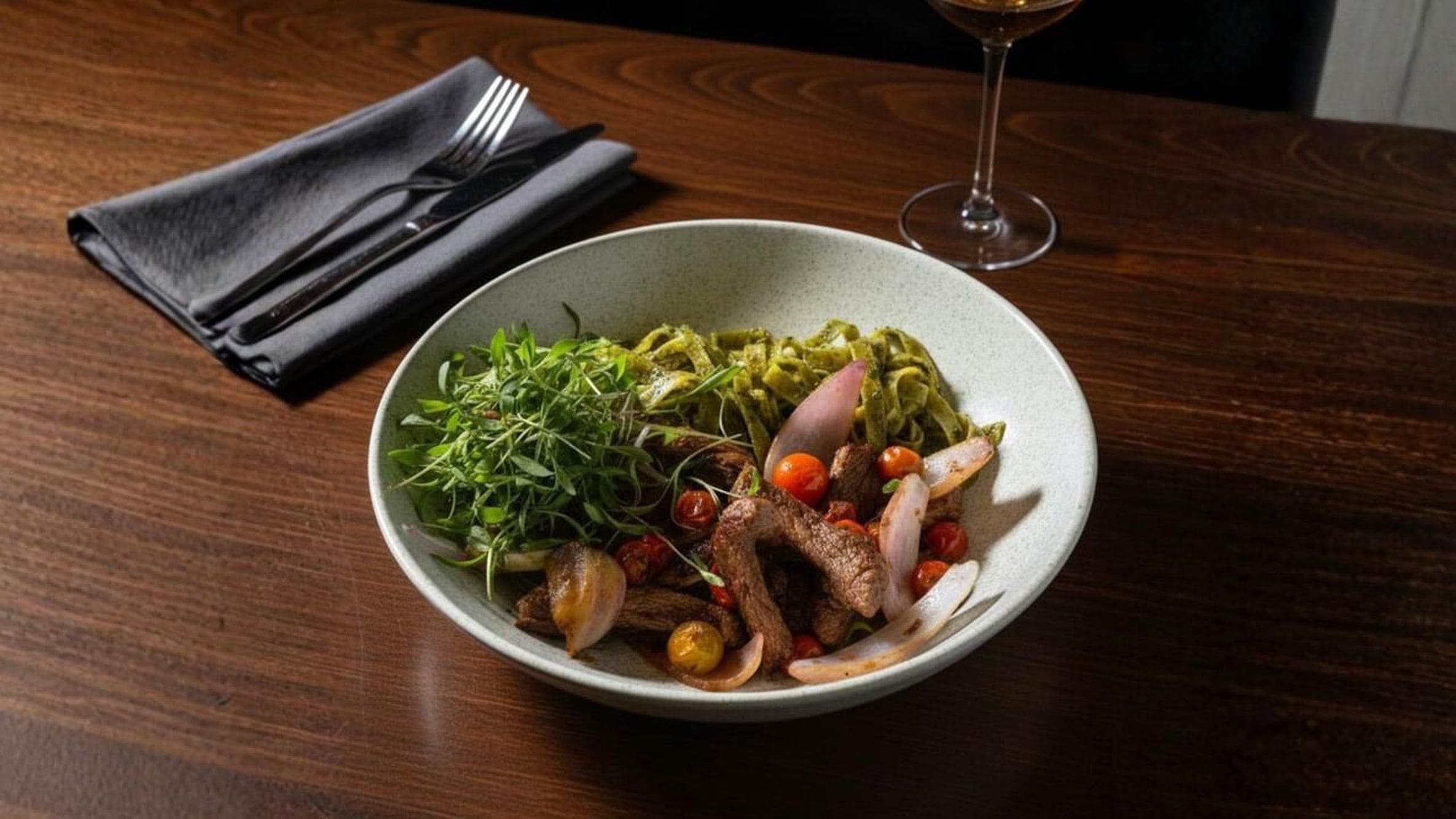 - Tallarin verde con lomo salteado: Tallarines envueltos en una salsa verde cremosa y aromática, de sabor profundo y textura sedosa, acompañados de lomo salteado al punto, jugoso y lleno de carácter. Un plato contundente y reconfortante, donde se combinan intensidad, suavidad y un equilibrio perfecto que conquista desde el primer bocado.