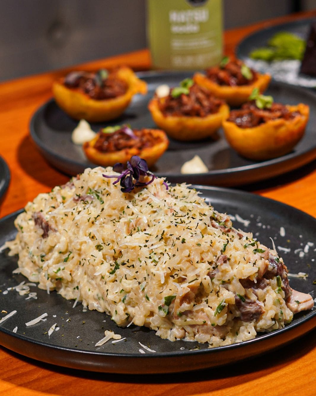 - Arroz cremoso cyb: Arroz en salsa cremosa con pollo, solomito y parmesano, con un toque suave de leche y crema de leche.