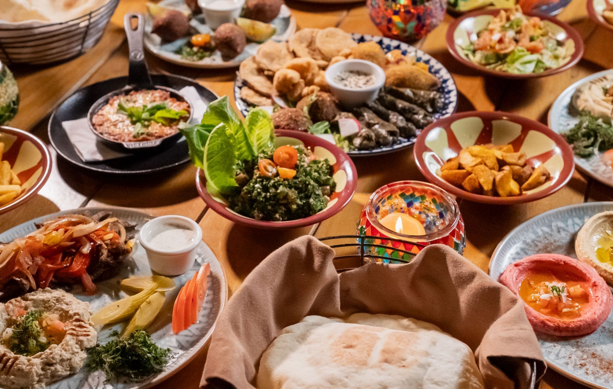 - Kibbeh frito: Croquetas de carne de res con trigo bulgur y especias árabes, acompañado de salsa de yogurt griego.