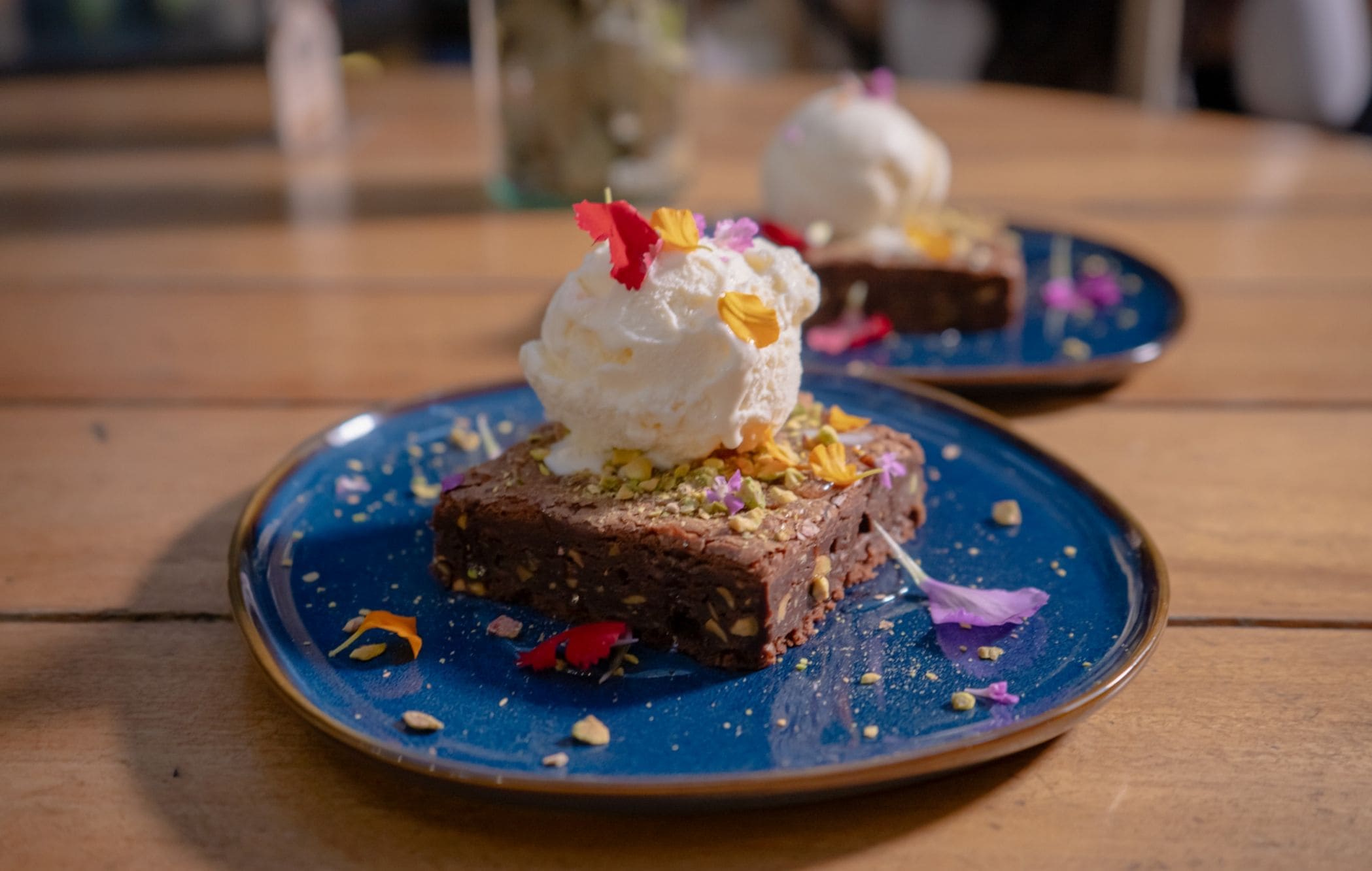 - Brownie de pistacho: Brownie a base de chocolate oscuro, mantequilla avellanada, pistachos troceados, acompañado de helado de vainilla artesanal.