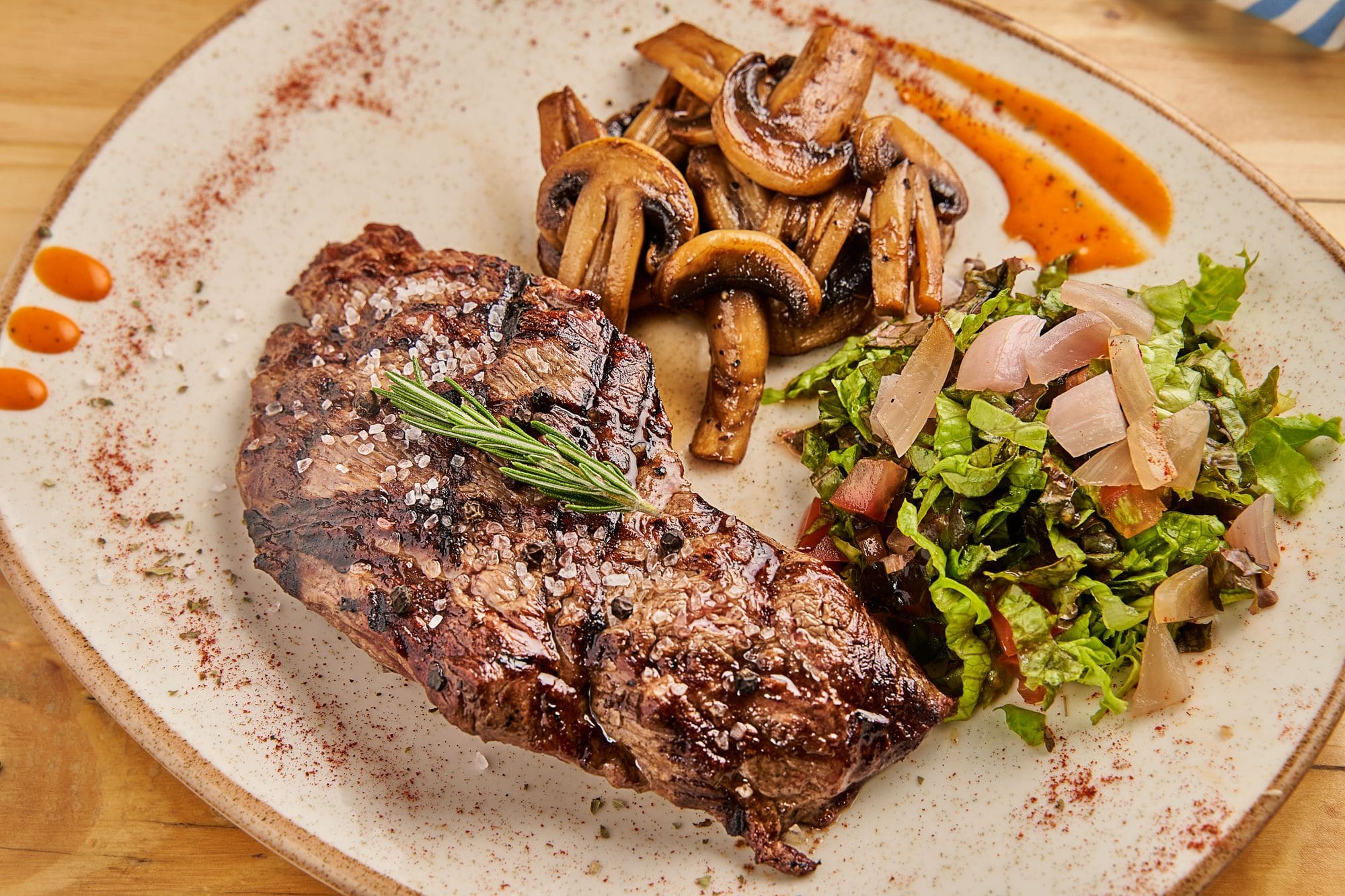 - Ojo de bife: Jugoso y marmoleado corte de res a la parrilla, definitivamente la estrella de la casa.