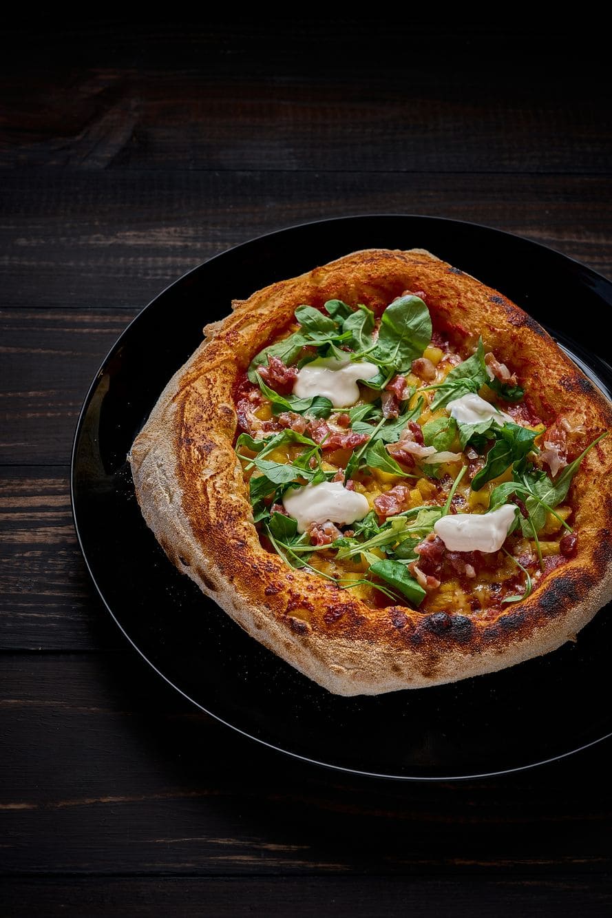 - Tropical: Masa madurada entre 24 y 72 horas para lograr la ligereza y complejidad perfectas. Salsa pomodoro y mozzarella, decorada con trozos de piña tropical, rúgula fresca, y finas virutas de jamón serrano. Se corona con stracciatella cremosa, que aportando una textura suave y decadente. ¡Un viaje de sabor exótico que enamora al primer bocado!
