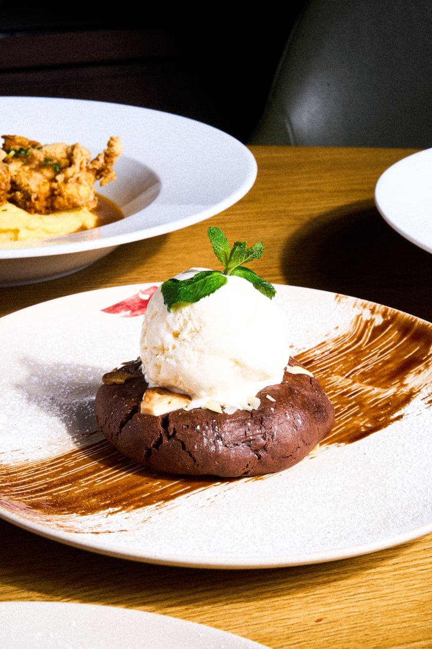 - Galleta hot wings: Nuestra galleta hot wings, es una galleta rellena con ganache de chocolate acompañada de helado de vainilla y salsa de chocolate