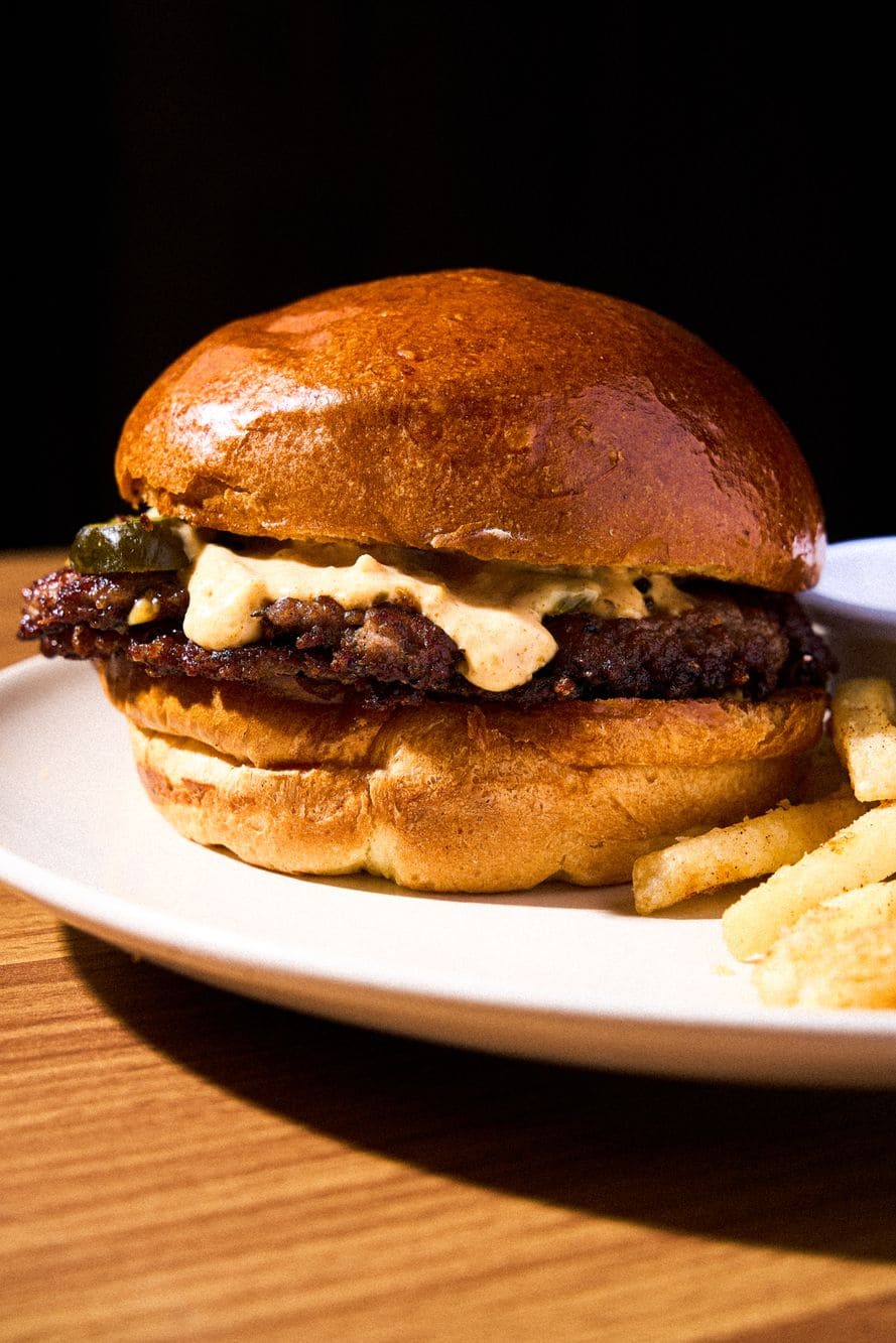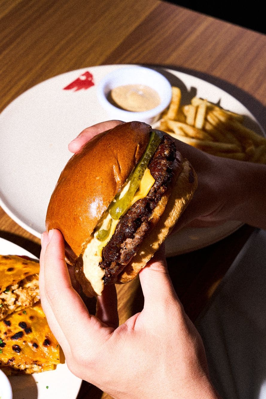 - Hamburguesa smash hot wings: Nuestra hamburguesa smash hot wings es doble carne smash, salsa de la casa, queso americano, pepinillos, pan brioche. Con tu elección de papas (doradas, francesas, espiral).