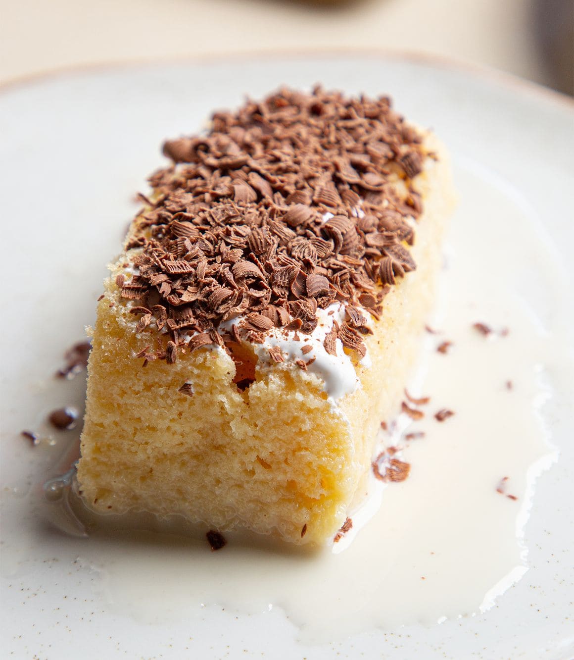 - Tres Leches: Bizcochuelo en tres leches, con merengue italiano y un toque de chocolate.