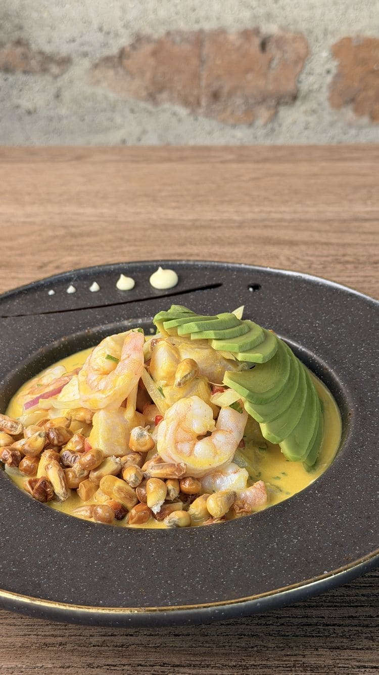 - Ceviche a la crema: Selectos dados de pescado fresco y camarones, delicadamente marinados en limón, cebolla, cilantro y ají rocoto, realzados con una sedosa crema de ají amarillo. Servido con maíz y aguacate, creando una experiencia vibrante de sabores frescos y elegantes.