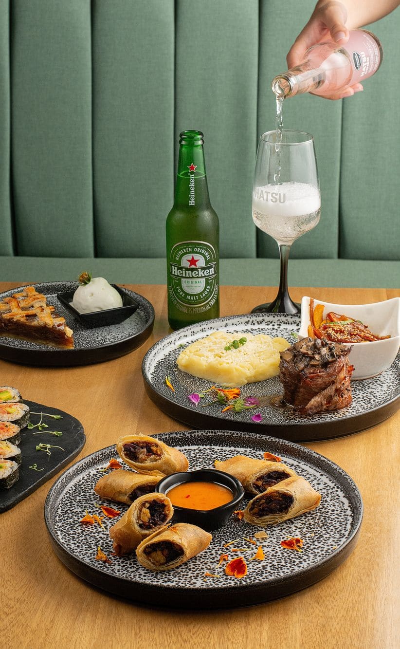 - Spring Roll dePollo: Crujientes por fuera, suaves por dentro. Rollos primavera rellenos de pollo jugoso y verduras frescas salteadas en aceite de ajonjolí. Una entrada ligera y llena de texturas que abre el apetito con un toque asiático inconfundible.
