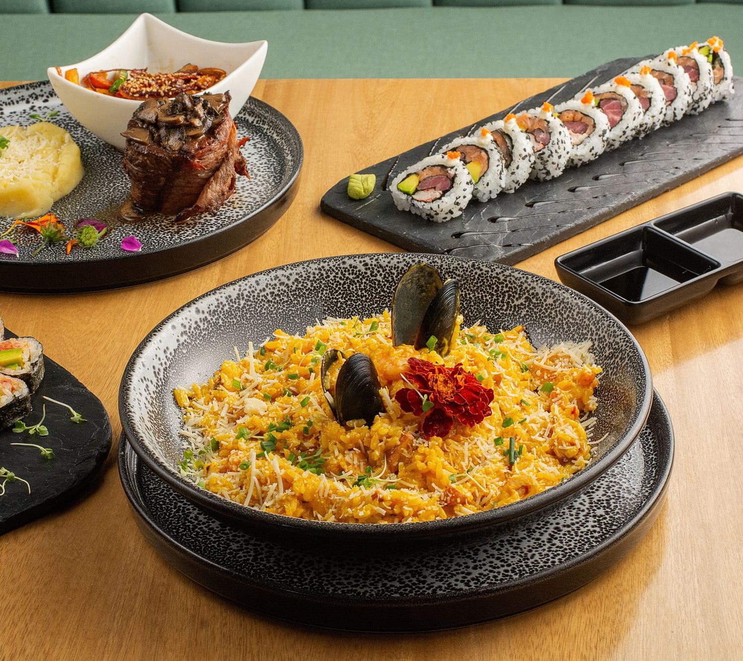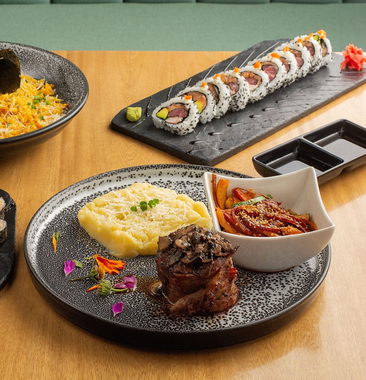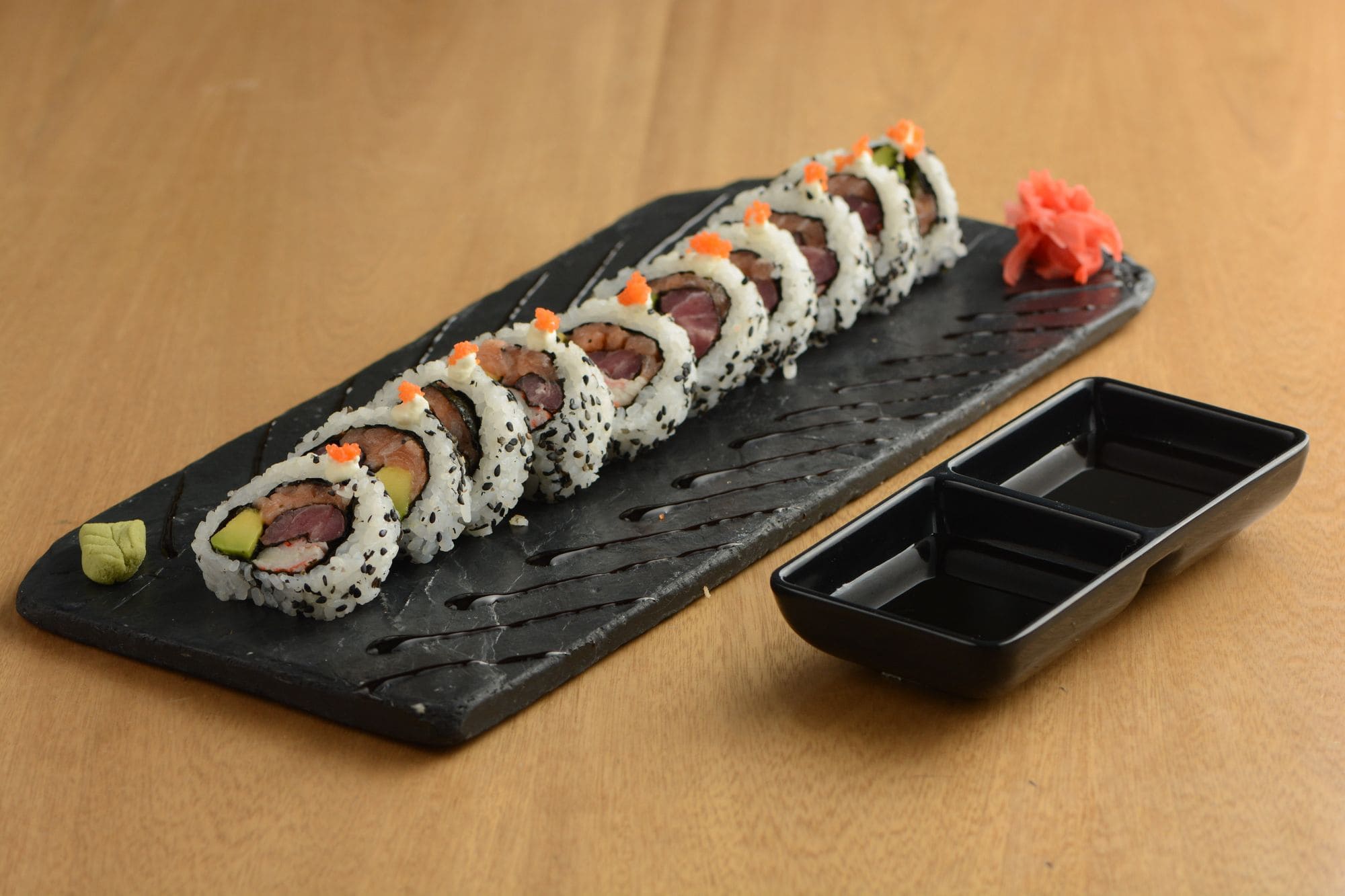 - Ojo de tigre roll: ¡Un ícono del sushi! Combinación de salmón, atún, kanikama y aguacate, envuelto en ajonjolí negro y coronado con mayonesa japonesa y caviar. Diez bocados de pura fusión y elegancia.