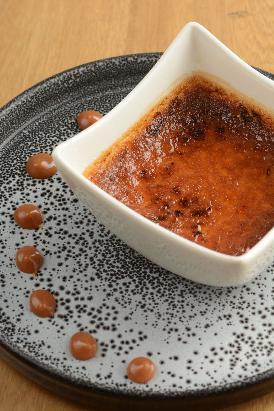 - Crème brûlée: La joya de la repostería francesa: crema aterciopelada cubierta por una fina capa de caramelo crocante que estalla al romperse con la cuchara. Elegancia en cada cucharada.
