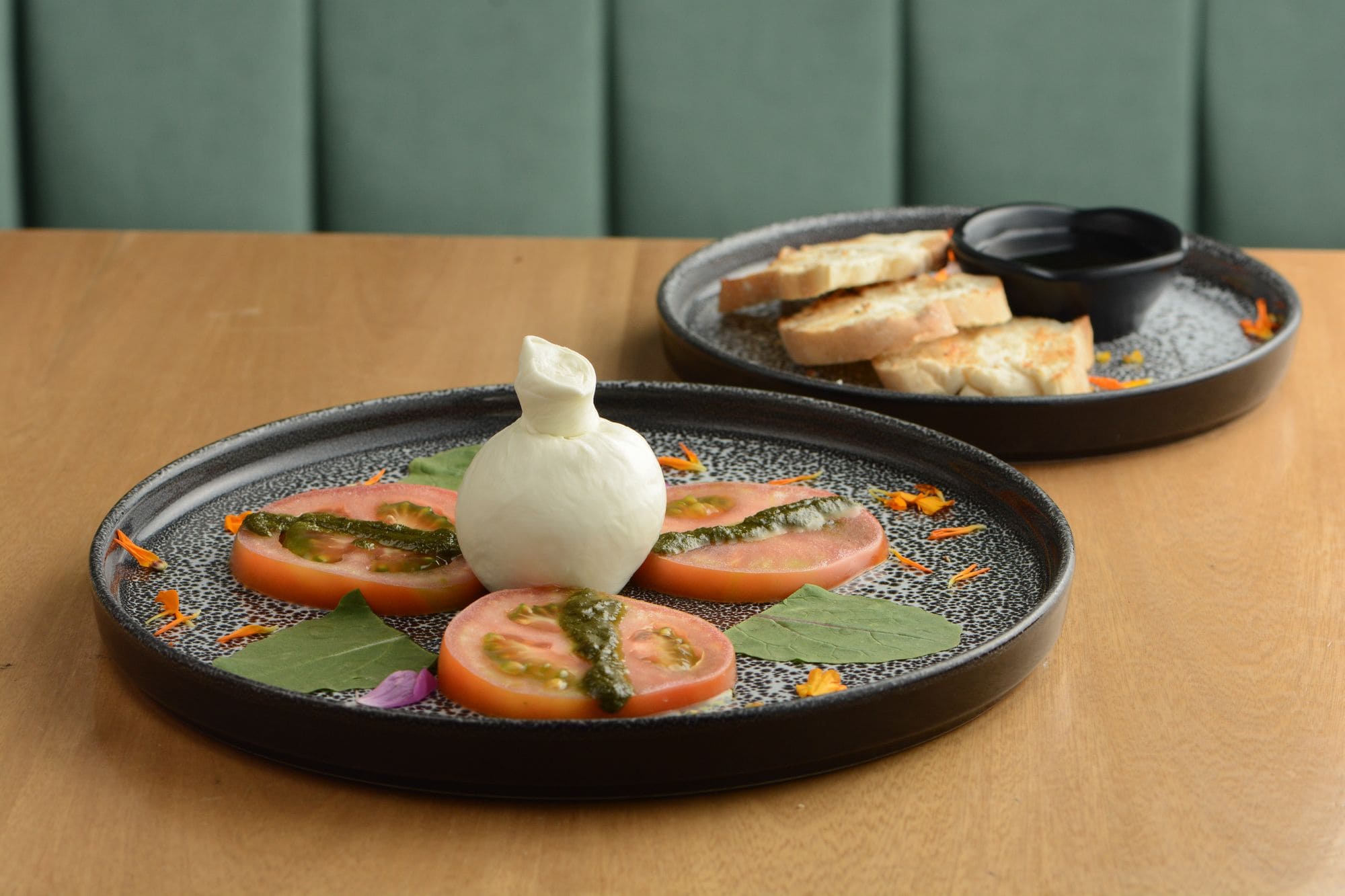 - Burrata caprese: Mozzarella de búfala cremosa con tomates frescos, rúgula, pesto y reducción de balsámico. Un clásico italiano que celebra la frescura y la elegancia en cada bocado.