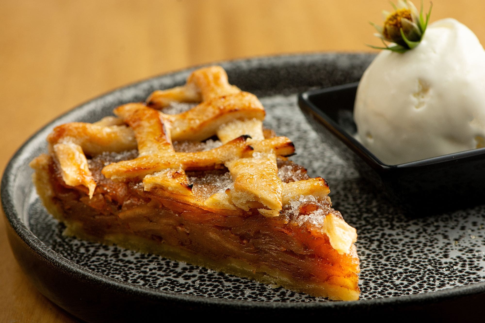 - Pie de manzana: Un clásico americano recién horneado, con manzana caramelizada y un toque de canela, servido con helado. Reconfortante, cálido y perfecto para cerrar la experiencia.