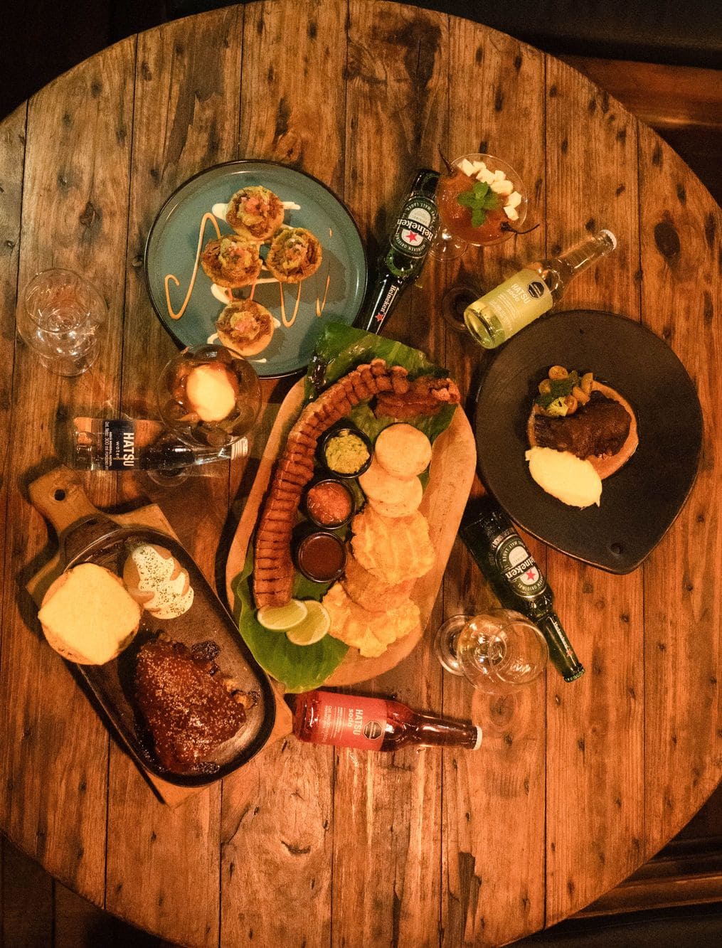 - Chicharron ¡Que hpta chicharron!: Explosión de crocancia y jugosidad, piel perfectamente dorada y carne intensa con profundo sabor ahumado al barril, acompañado de arepas artesanales, y patacones crujientes al momento. Puro carácter paisa