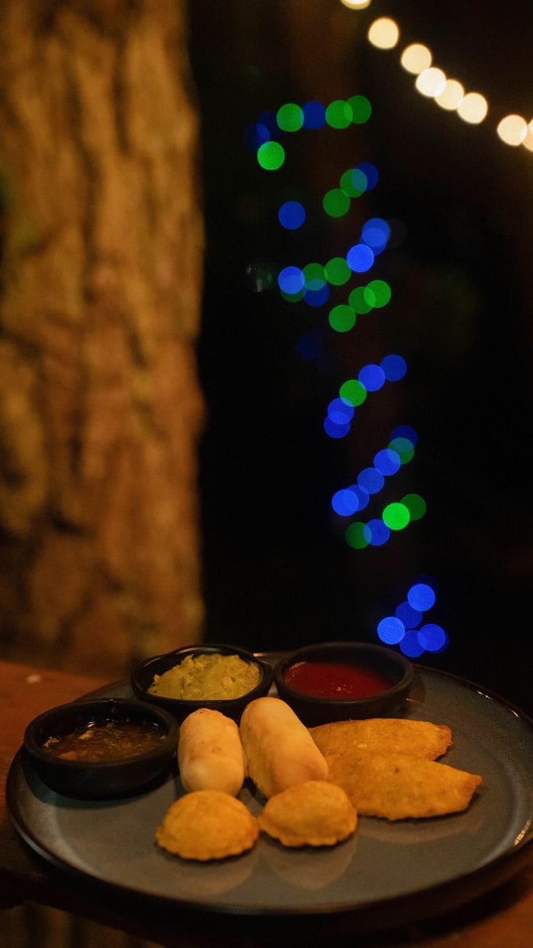 - Arepitas con carne desmechada: 2 arepitas con carne desmechada, acompañadas de pico de gallo y guacamole