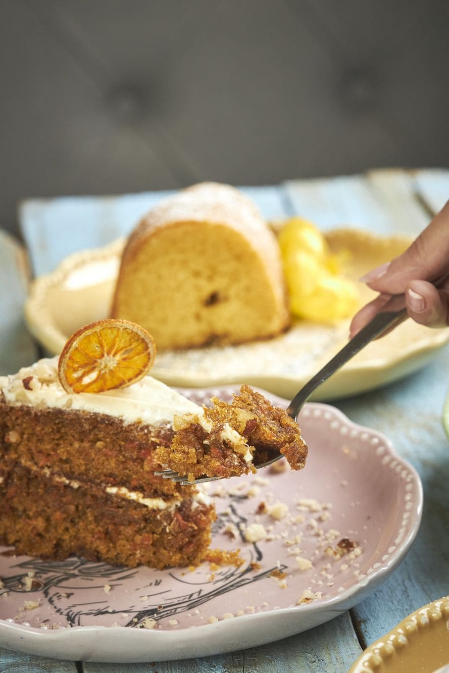 - Torta de zanahoria: Cubierta de un frosting de queso crema o torta de chocolate semi amargo.