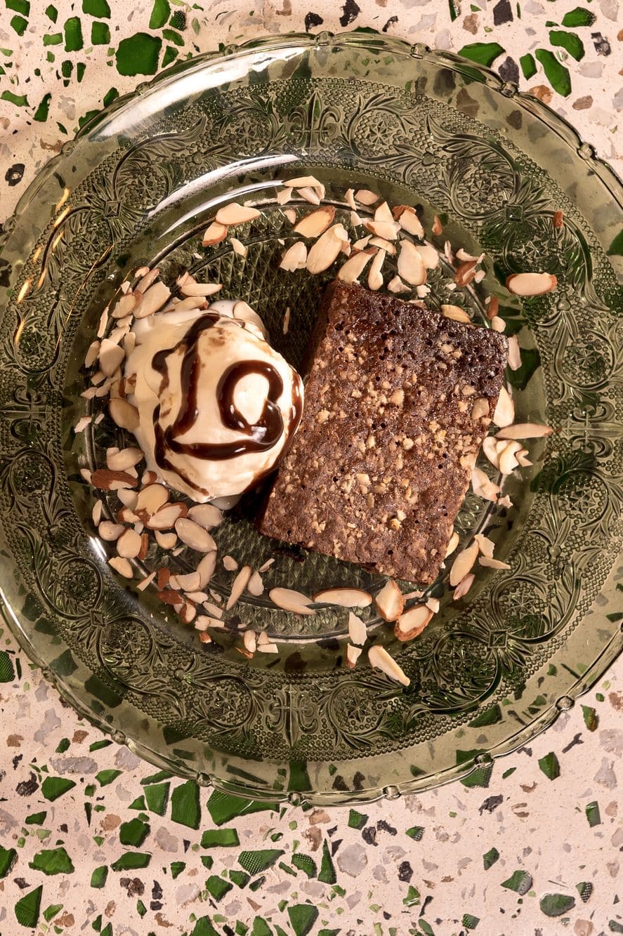 - Brownie con helado: Brownie de chocolate artesanal con helado de vainilla