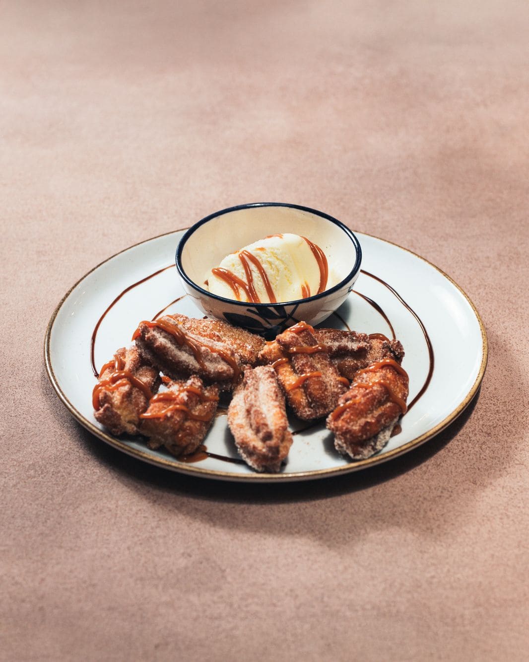 - Churro la vicenta: Churros cubiertos con azúcar y canela. Servicios con salsa de chocolate y arequipe