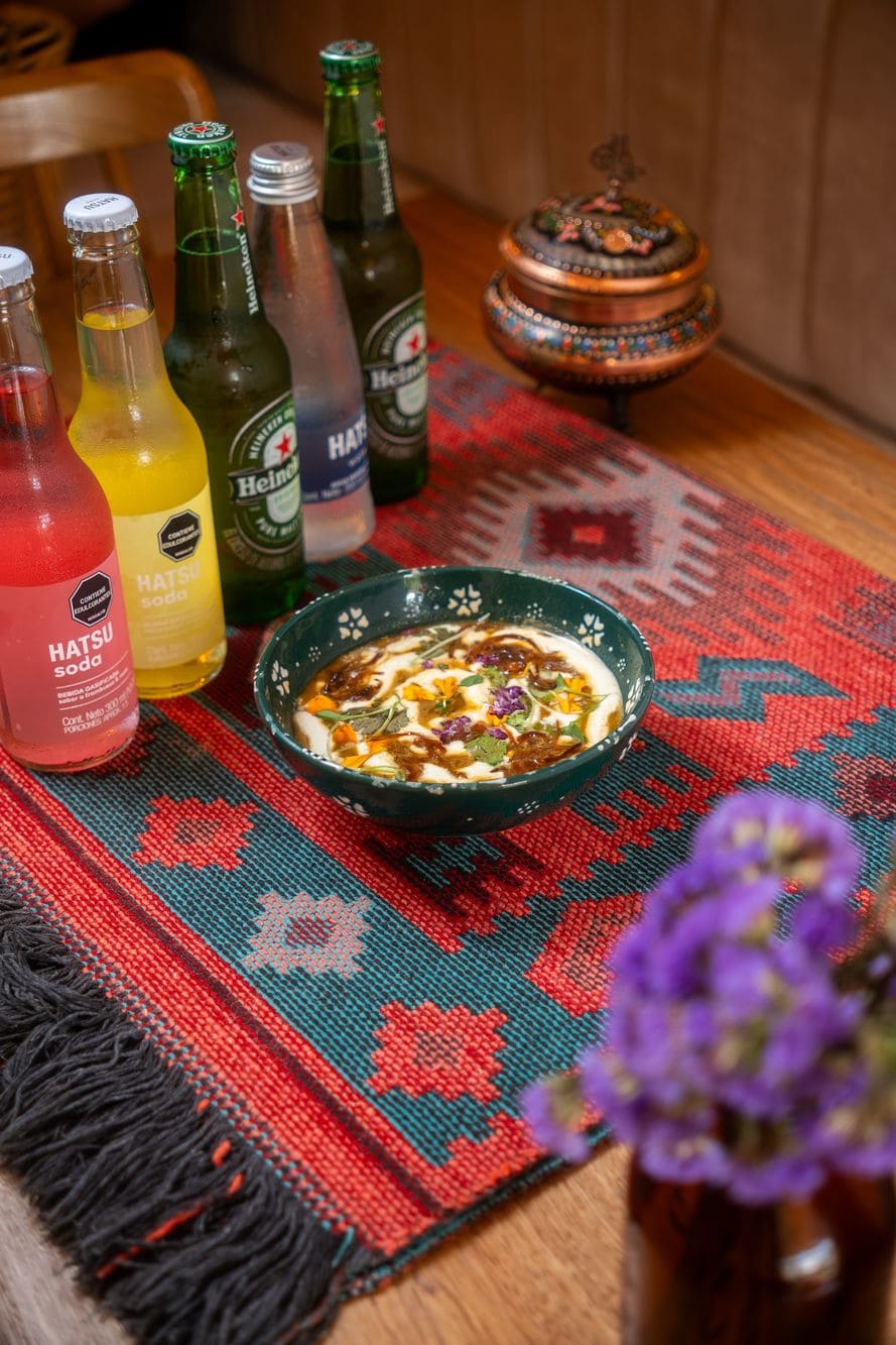 - Adasi: Es una sopa de medio oriente, que normalmente consumen en el desayuno, es preparado con lentejas rosadas, cebollas y especias. Terminado con yogur griego y cebollas confitadas. (Opción vegana sin yogurt)