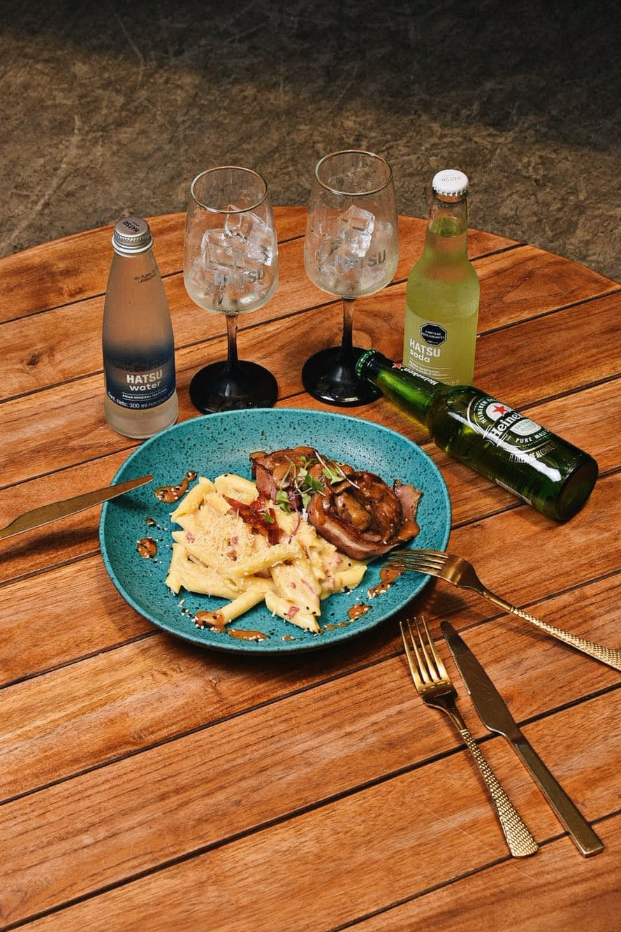 - Filet miñón: Filet miñón de cerdo jugoso y perfectamente sellado, bañado en sus propios jugos que realzan su ternura y sabor profundo. A su lado, una seductora pasta penne carbonara, cremosa y envolvente, con notas ahumadas y un equilibrio perfecto entre suavidad y sabor.