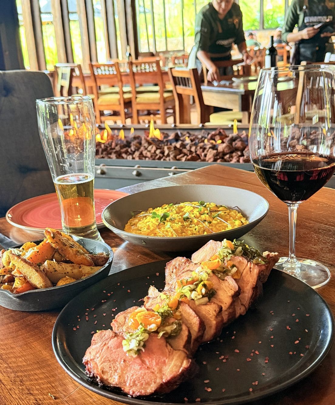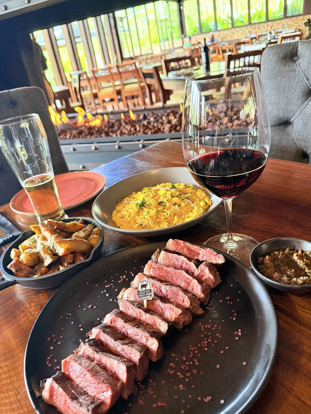 - New york steak: 500g de chata tierna, rica en grasa externa y con buen marmoleo certified angus beef, asada a la parrilla y servida con chimichurri de berenjena, tubérculos rostizados en mantequilla trufada ahumada y arroz cremoso a base de ají amarillo.