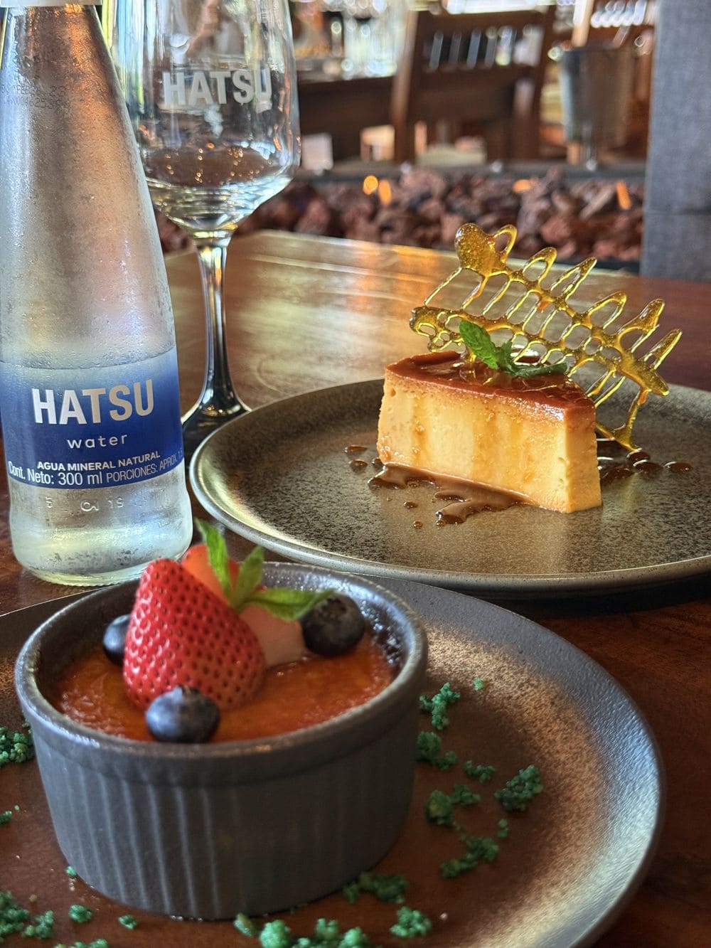 - Crème brûlée: Delicada crema de vainilla y baileys, cubierta con una fina capa de caramelo crocante y frutillas.