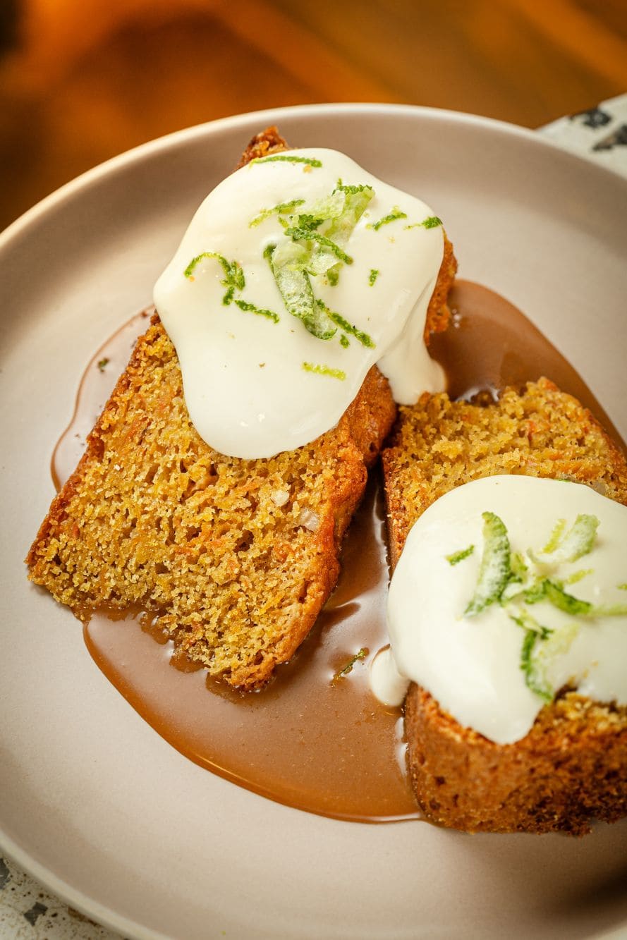 - Torta de queso: Torta de queso, con base de arequipe y café, terminada con crema de ron y yogurt griego.