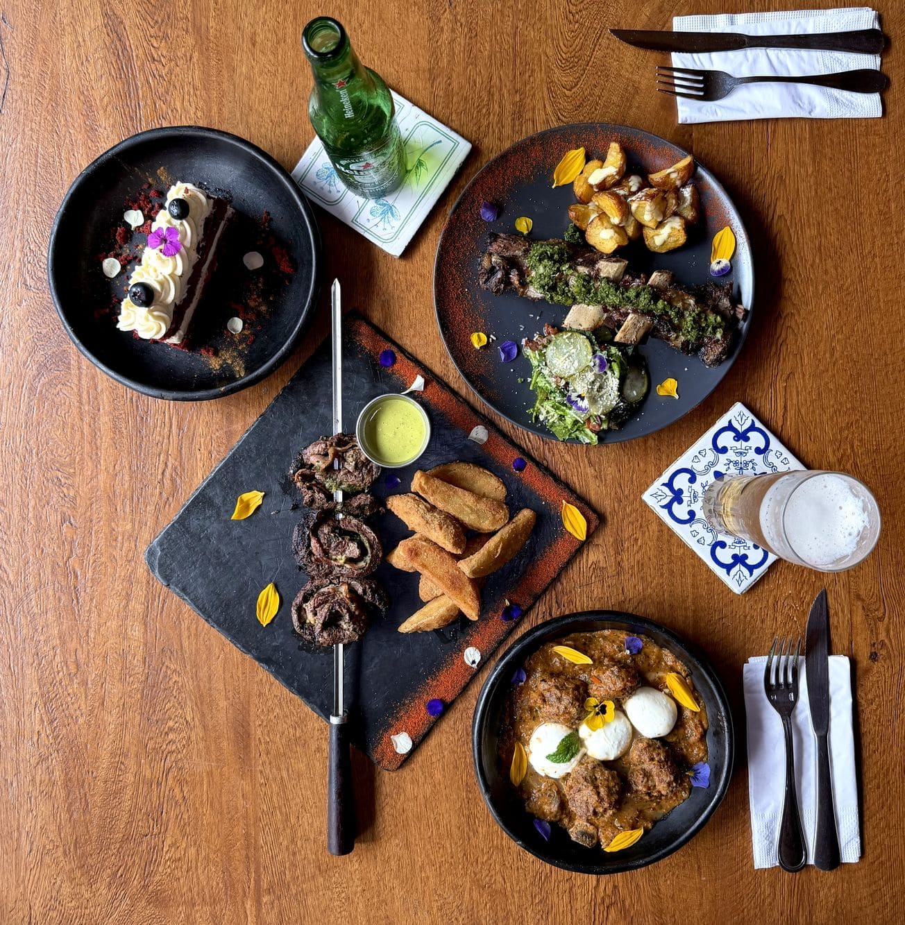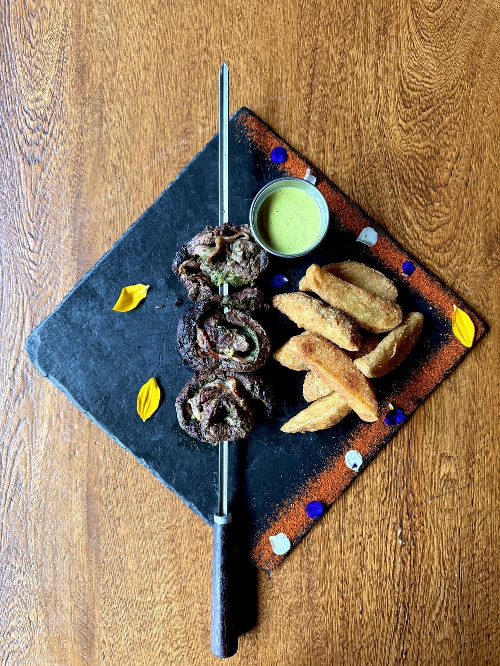 - Brocheta di manzo: Lanza de solomito enrollada delicadamente con panceta de cerdo ahumada, chimichurri y parmesano acompañada de cascos de papa al panko y con una salsa artesanal de cilantro.