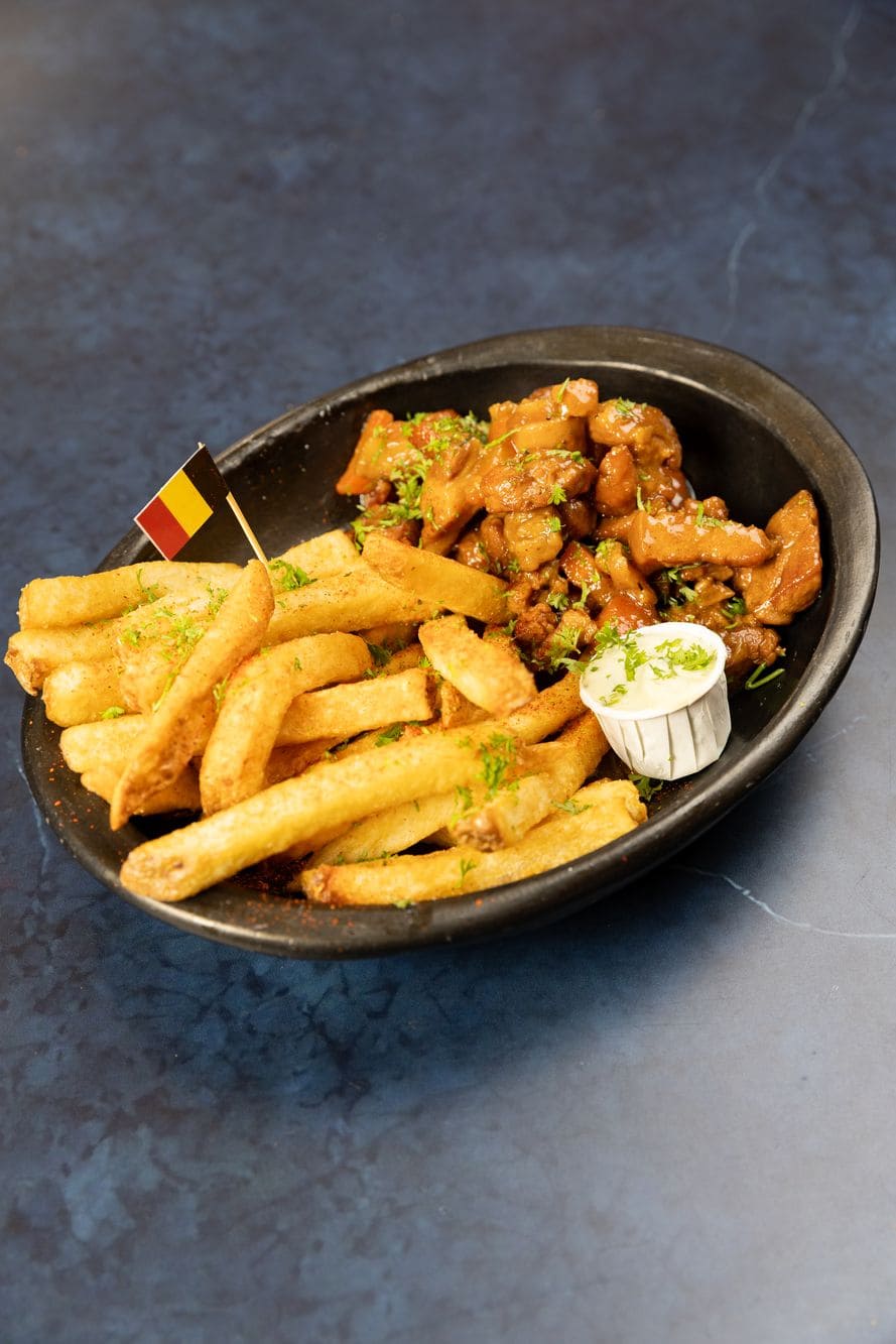 - Carbonade Flamande: Tradicional estofado belga de solomito de cerdo en salsa de cerveza negra, siempre acompañado de nuestras papas belgas.