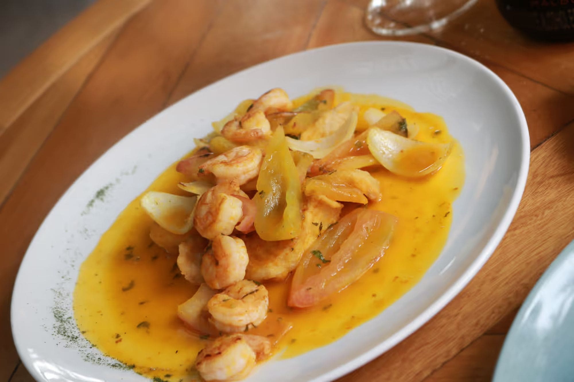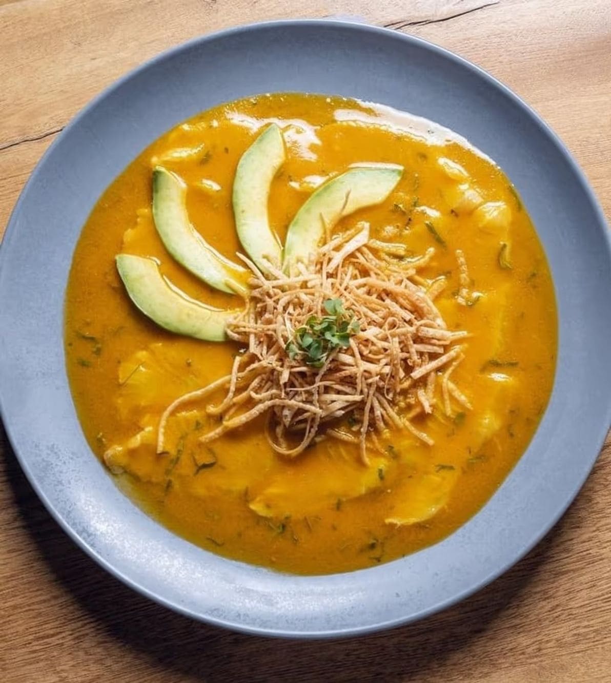 - Aguadito de mariscos: Sopa peruana a base de cilantro con camaron, pulpo, calamar, pescado, alverja, zanahoria y arroz, acompañado de aguacate y cascos de limon.