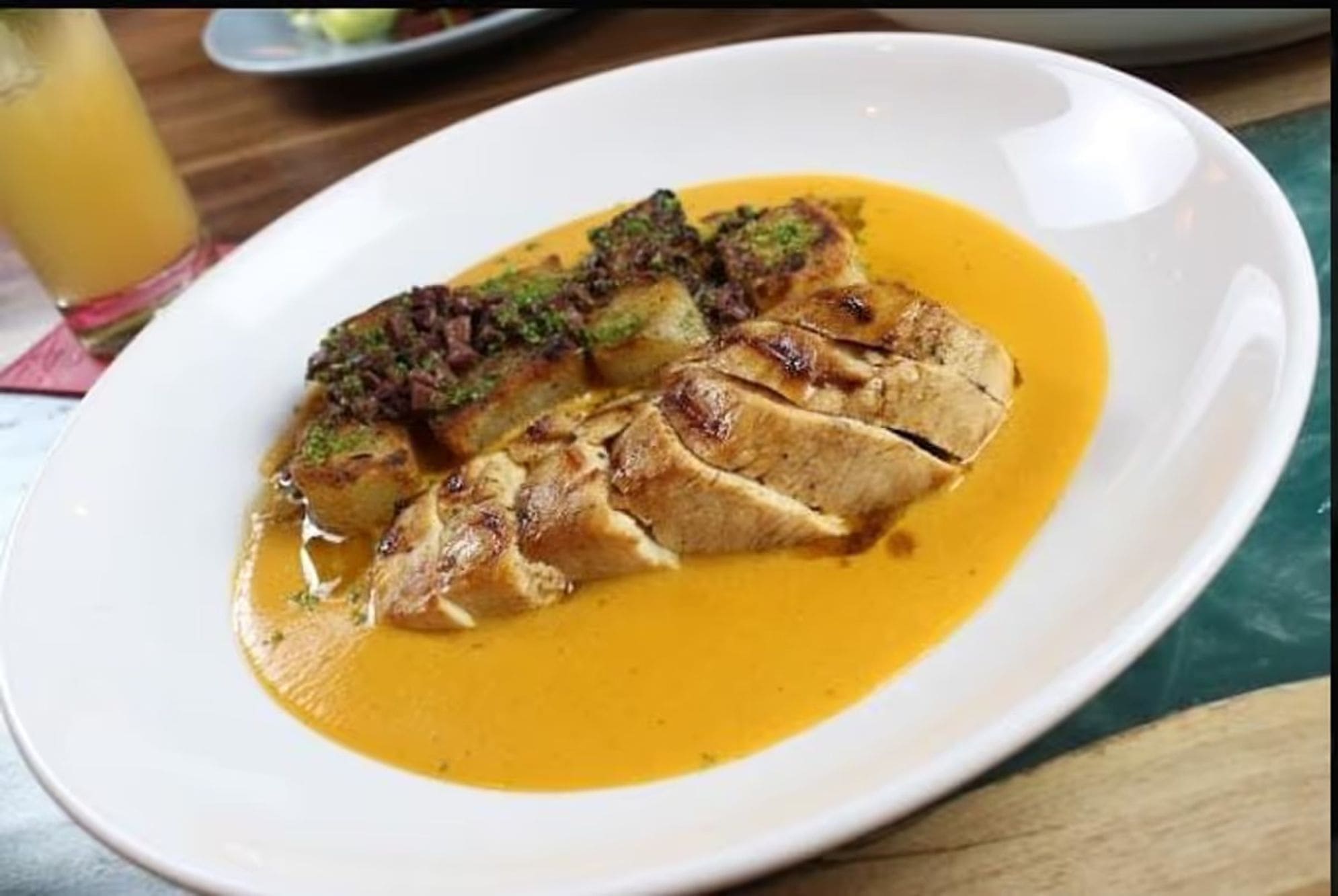 - Pollo uchucuta: Pechuga de pollo rostizada al horno previamente marinada al tequila, salsa uchucuta, papas confitadas y tapenade de aceituna calamata.
