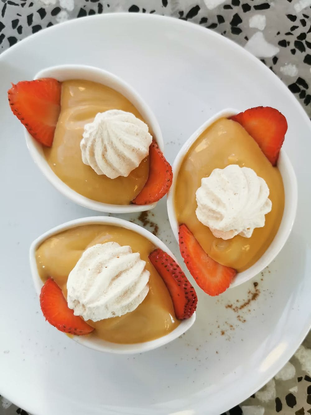 - Suspiro limeño: Reduccion de dulce de leche coronados con fres y merengues.