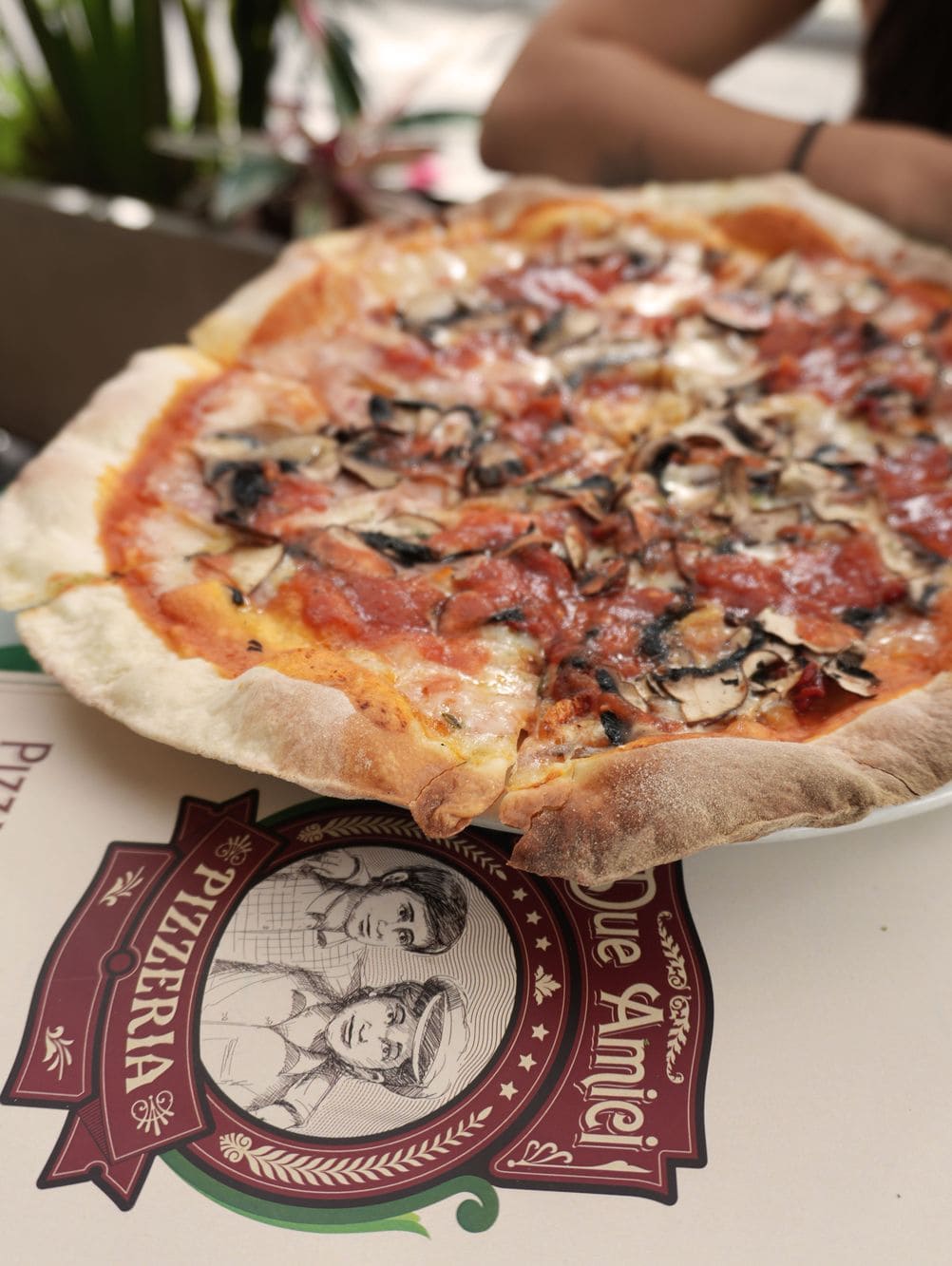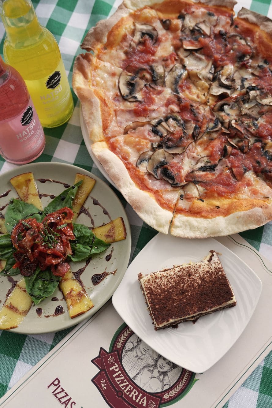 - Manu: Queso mozzarella de búfala y tomates san marzano, jamón york y hongos cremini.