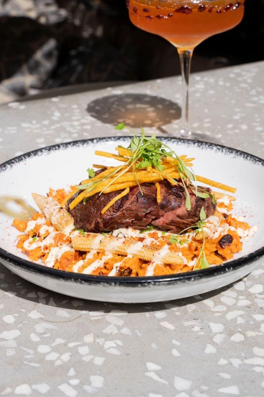 - Steak and cheese: Solomito de res a la parrilla, acompañado con macarrones en salsa de queso cheddar, crocante de tocineta y espárragos parrillados.