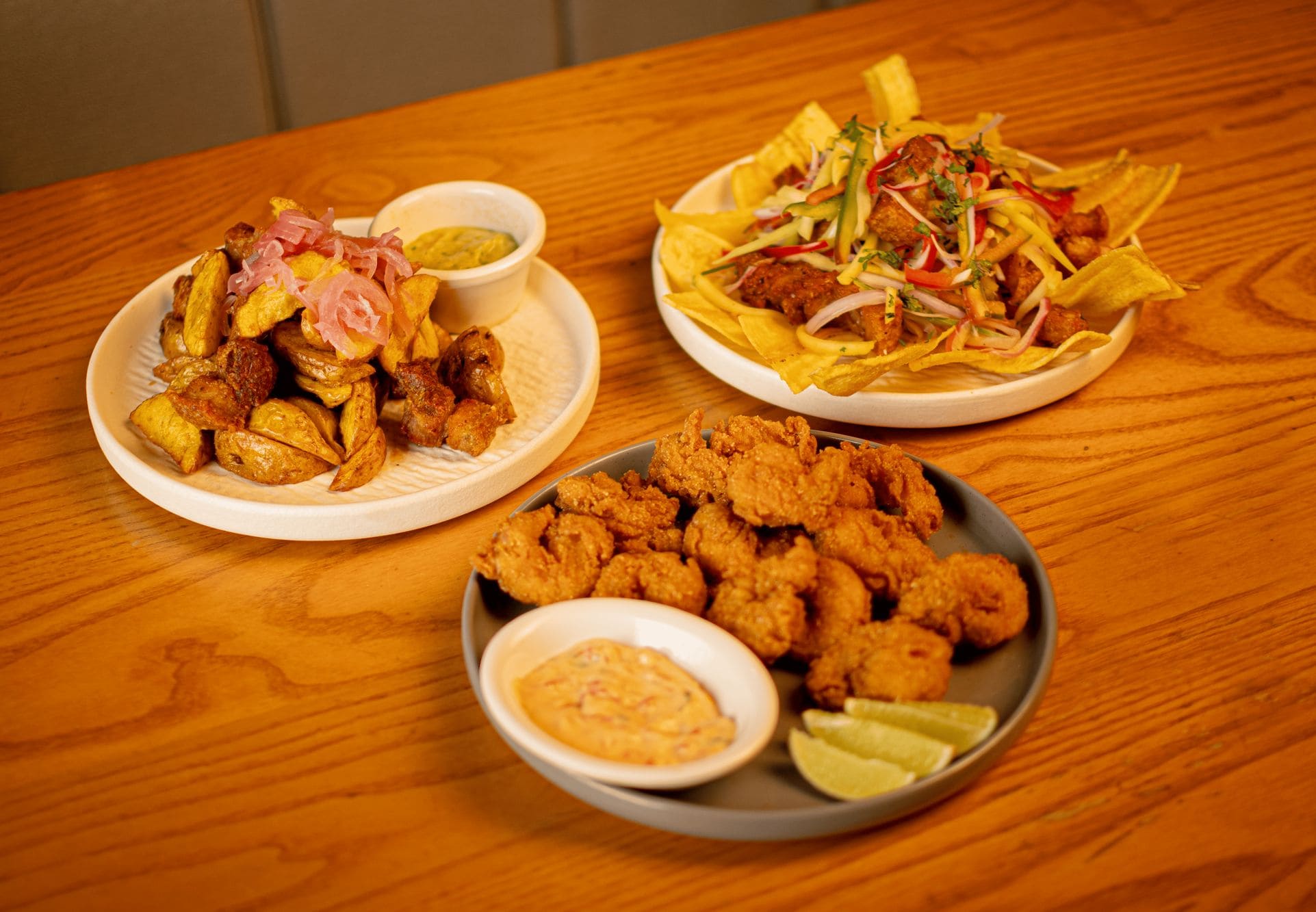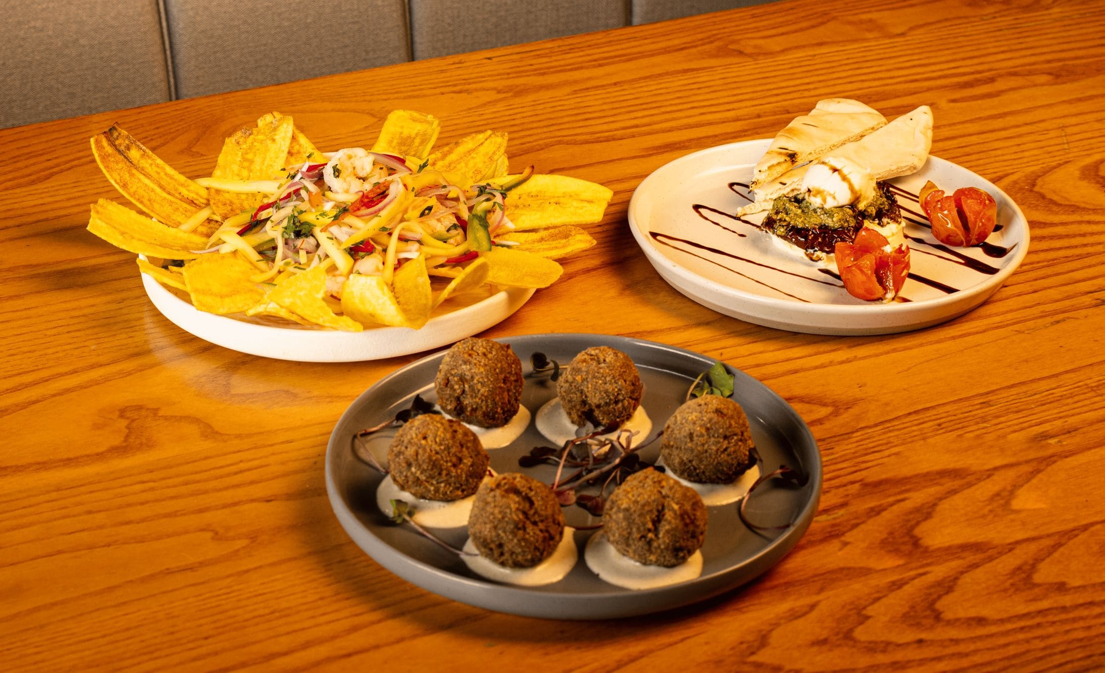 - Ceviche de chicharrón: Chicharrón crocante, limón cebolla roja, cilantro, mango y chips de plátano.