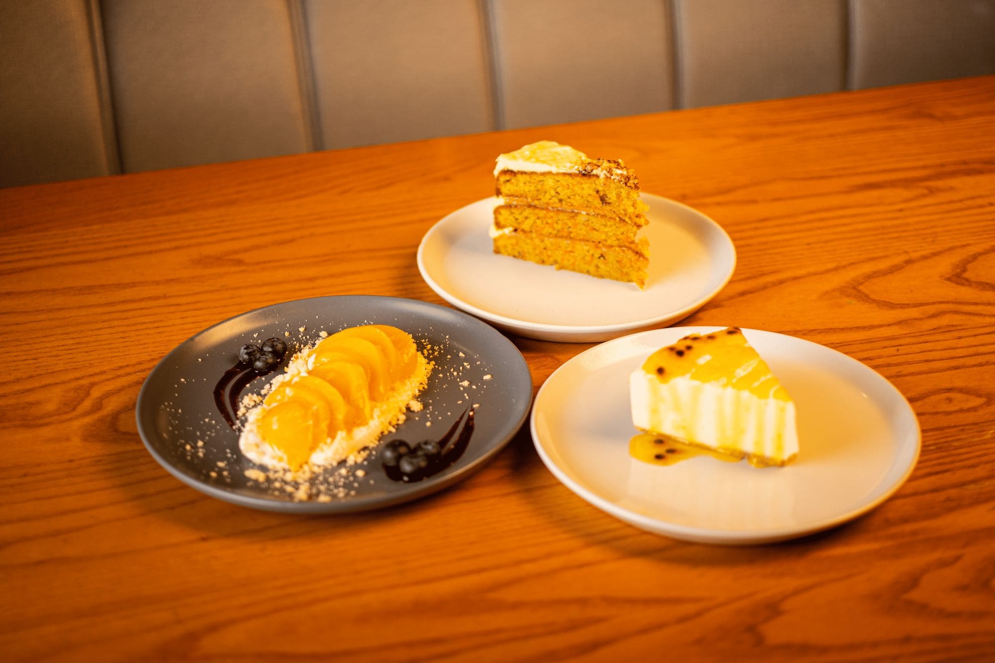 - Capricho amarillo: Chessecake bañando de reducción frutos amarillos