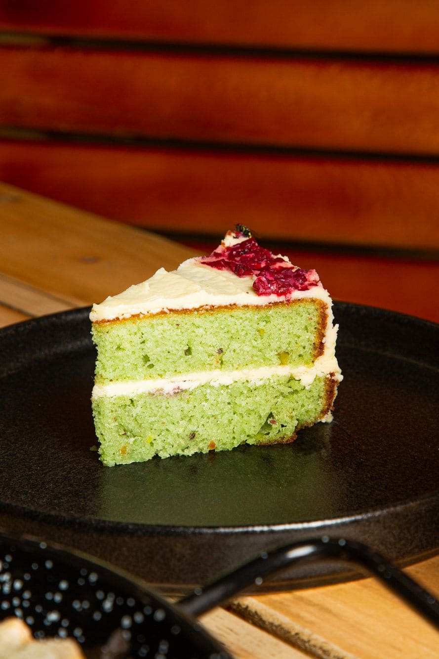 - Torta de pistacho con chocolate blanco: Un postre sofisticado donde la suavidad del bizcocho de pistacho se fusiona con la cremosidad del ganache de chocolate blanco. Una combinación equilibrada, delicada y llena de contrastes que conquista desde el primer bocado.